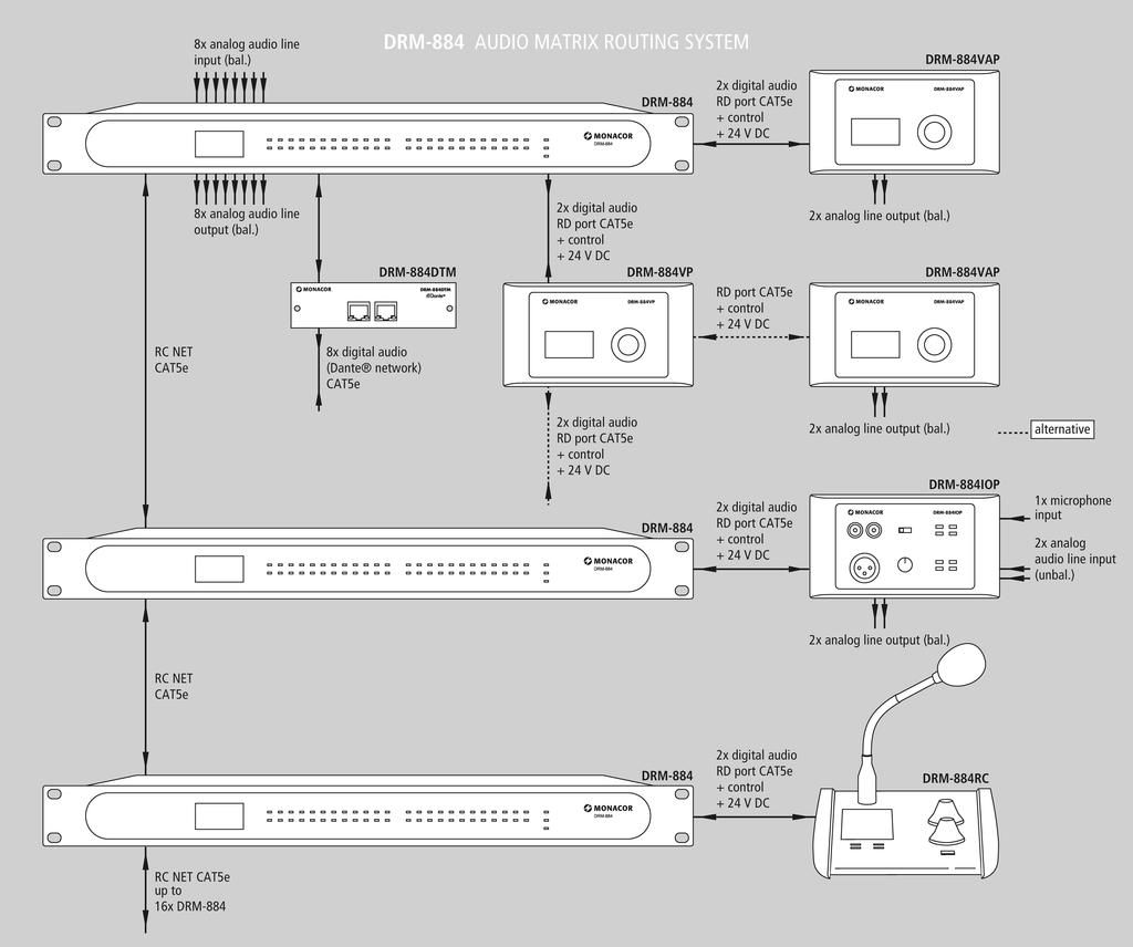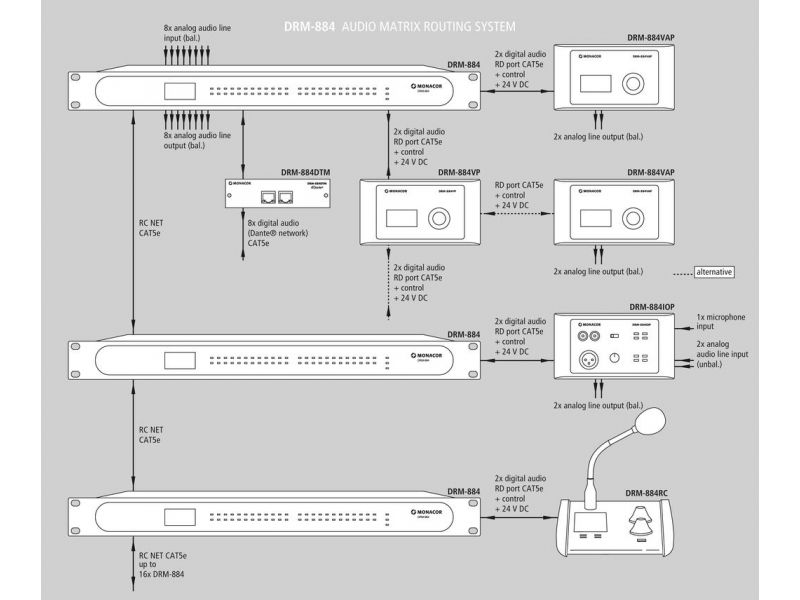 Univerzálny audio matrix systém DRM-884 ... Všeobecné riešenie všestranných konceptov PA s viacerými miestnosťami s pevnými inštaláciami v hoteloch, reštauráciách a baroch, konferenčných miestnostiach, školách, športových a fitnes centrách. Maticový sys...