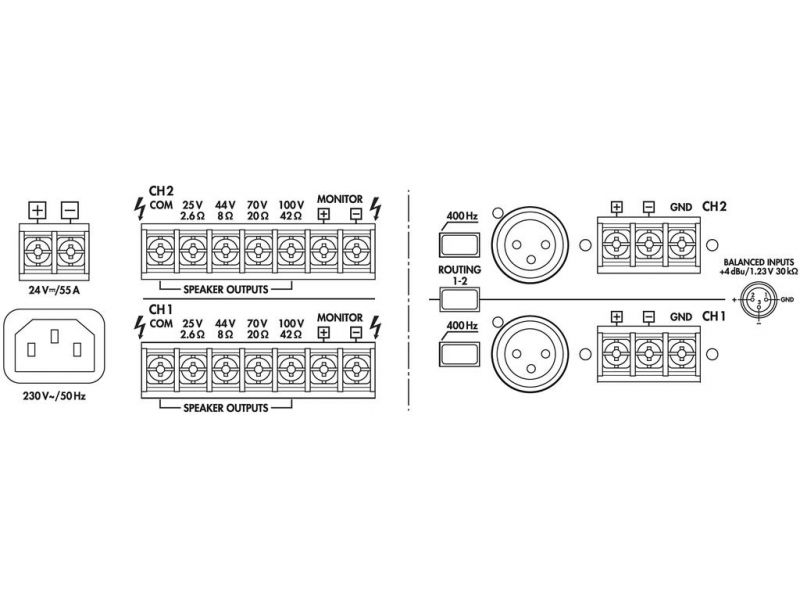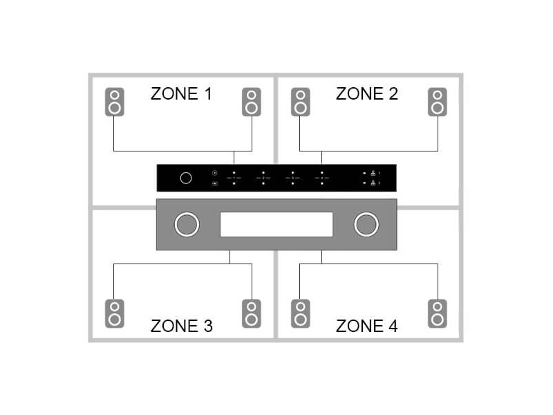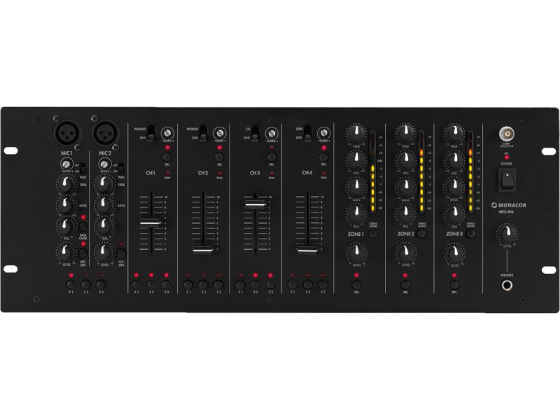- 4-zónový mono mixážny zosilňovač PA-40120 umožňuje nastaviť viaczónový systém pre samostatnú PA aplikáciu v predajných priestoroch, skladových priestoroch a sociálnych zariadeniach.