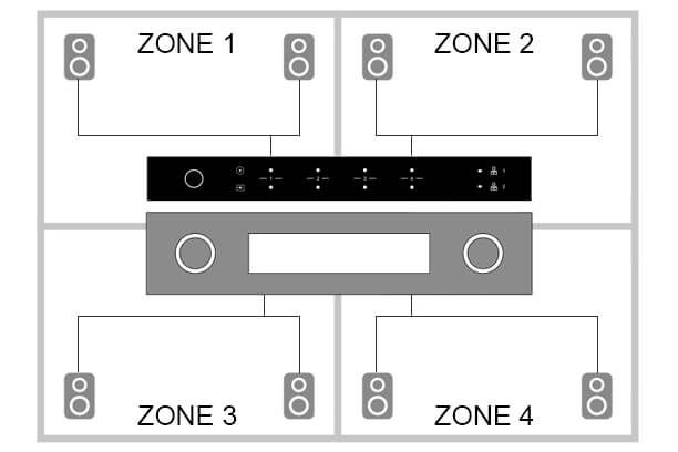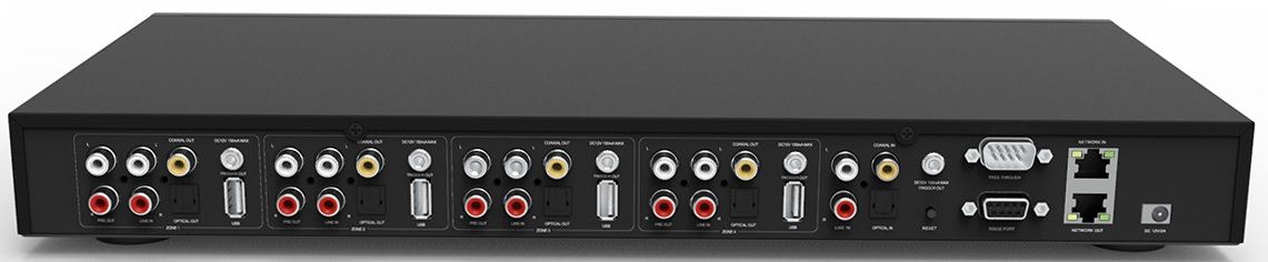 - Štyri samostatné PA zóny pre individuálny prenos hlasu a reprodukciu hudby