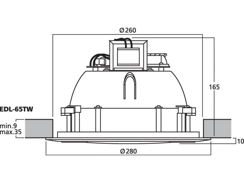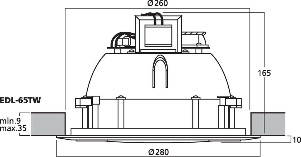 - PA stropné reproduktory EDL-65TW poskytujú kvalitný zvuk s konzistentným vyžarovaním, a preto sú ideálne pre reprodukciu hudby a reči v supermarketoch.