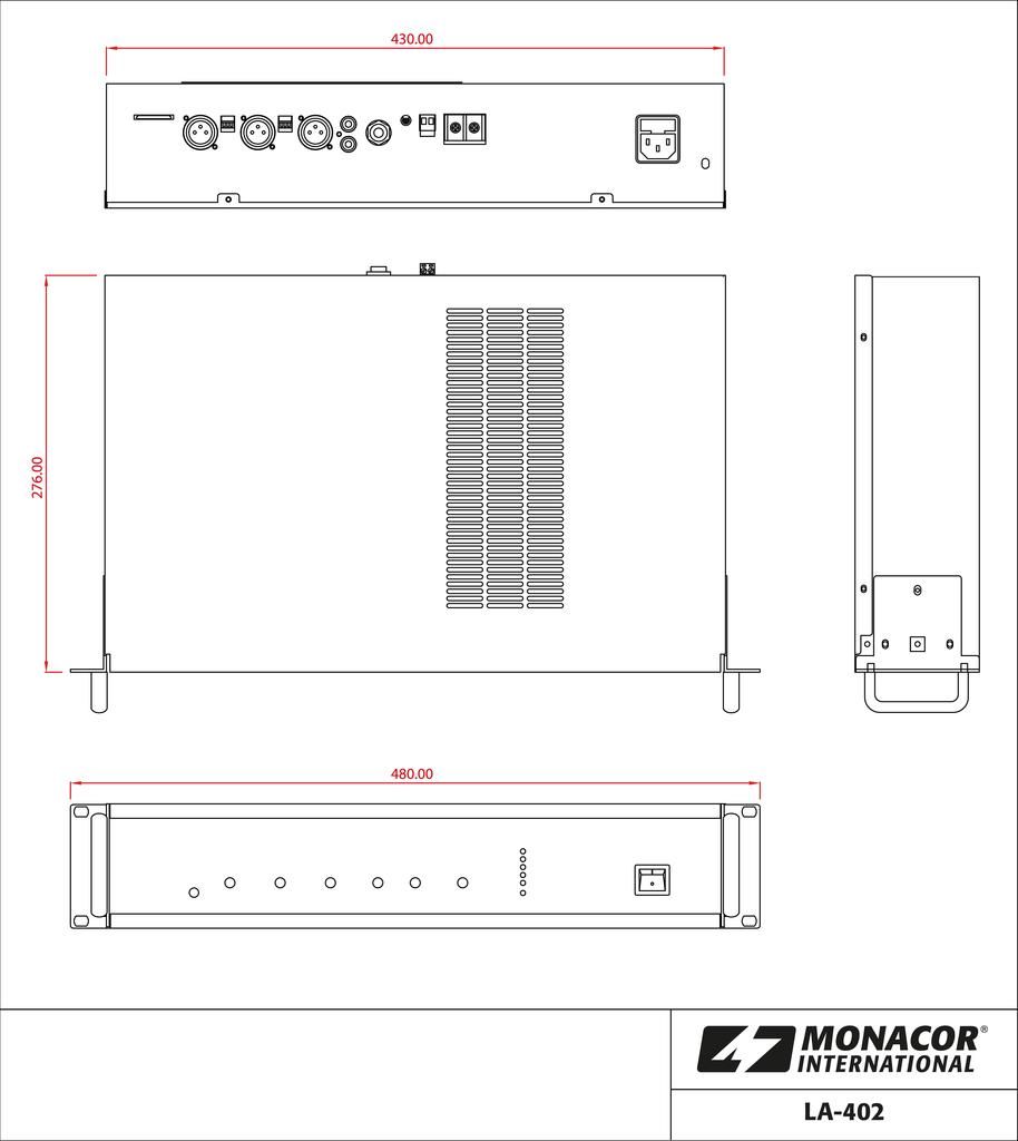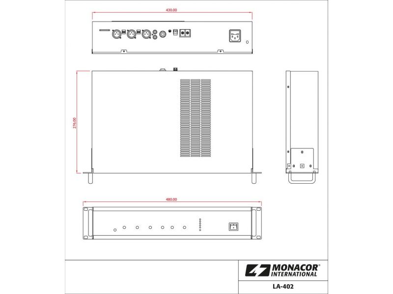 Mono PA výkonový zosilňovač 1 x 480 W Teplotne ovládaný ventilátor, plynule nastaviteľný Chránený proti prehriatiu, preťaženiu a skratu LED indikácia pre clip, protect, prehriatie, výstupný úroveň a 100 V/70 V Výstupný výkon (link) Reproduktorové výstup...