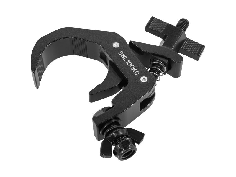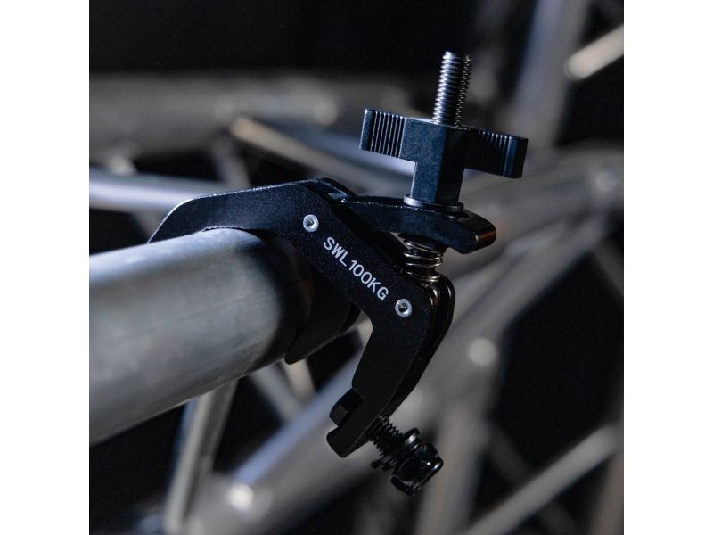 The Plugger 50CL100BK is a professional clamp designed to secure your lighting installations at concerts, events and DJ performances. Suitable for 40 to 58 mm bars, it can support up to 100 kg, guaranteeing a reliable hold for your spotlights, LED bars and motorised lyres. Its TUV Rheinland certification attests to its compliance with European standards, giving you the peace of mind you need for your installations. Its sober black finish means it will remain discreet on your stage structures, while ensuring perfect integration into your setup. Easy to install, the Plugger 50CL100BK comes complete with a butterfly clamp and Nylstop nut for quick and secure locking. Constructed from solid materials, it stands up to repeated use, whether on tour, in a club or in a fixed installation. Practical, robust and discreet, the Plugger 50CL100BK is the essential tool for lighting technicians and event organisers looking for a reliable solution for securing their stage equipment.