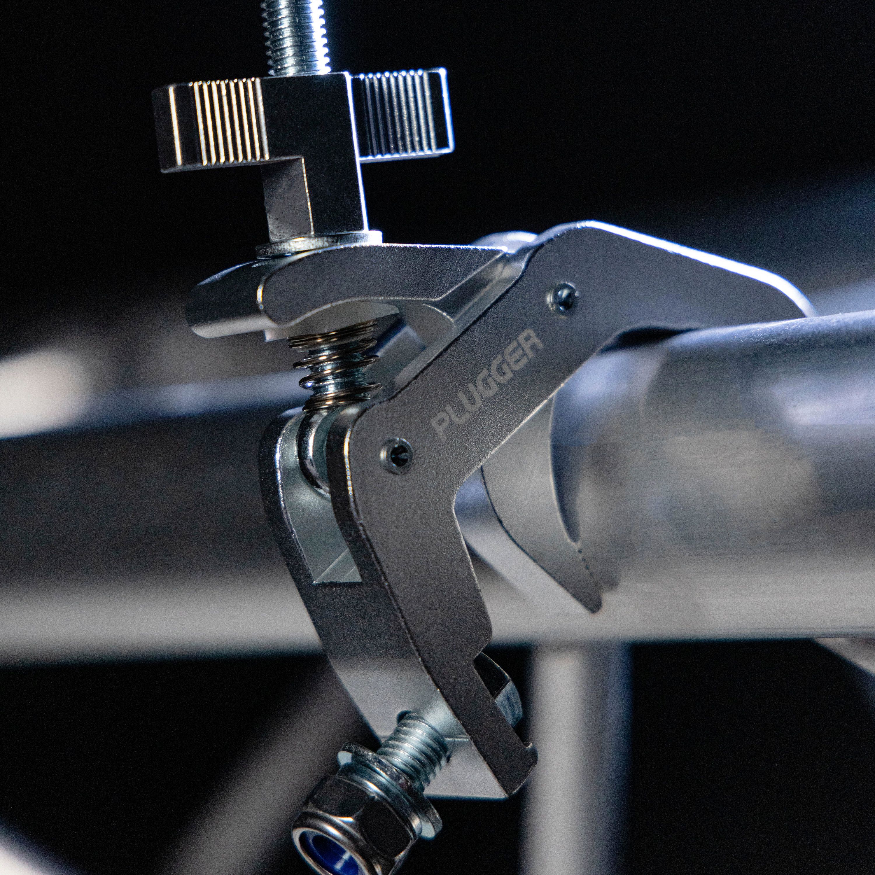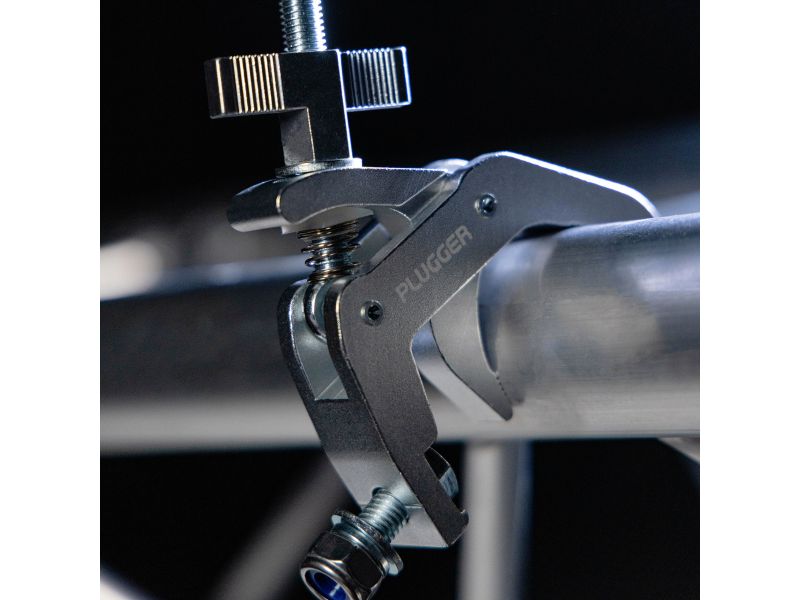 The Plugger 50CL100SIL is a professional clamp hook specially designed to securely hold your lighting equipment. Compatible with bars from 40 to 58 mm, it can support up to 100 kg, providing a solid hold for your spotlights, LED bars and motorised lighting fixtures. Its TUV Rheinland certification guarantees strict compliance with European standards, an essential criterion for professional stage installations and public events. Its elegant silver finish means it blends in naturally with the aluminium structures frequently used in events. Easy to use, the Plugger 50CL100SIL comes with a butterfly clip and a Nylstop nut for quick assembly and reliable fixing. Its robust design makes it a durable accessory, capable of withstanding the stresses of repeated tours and performances. Combining safety, aesthetics and practicality, the Plugger 50CL100SIL is the ideal tool for lighting directors, DJs and technical service providers looking for a reliable and elegant clamp for their installations.