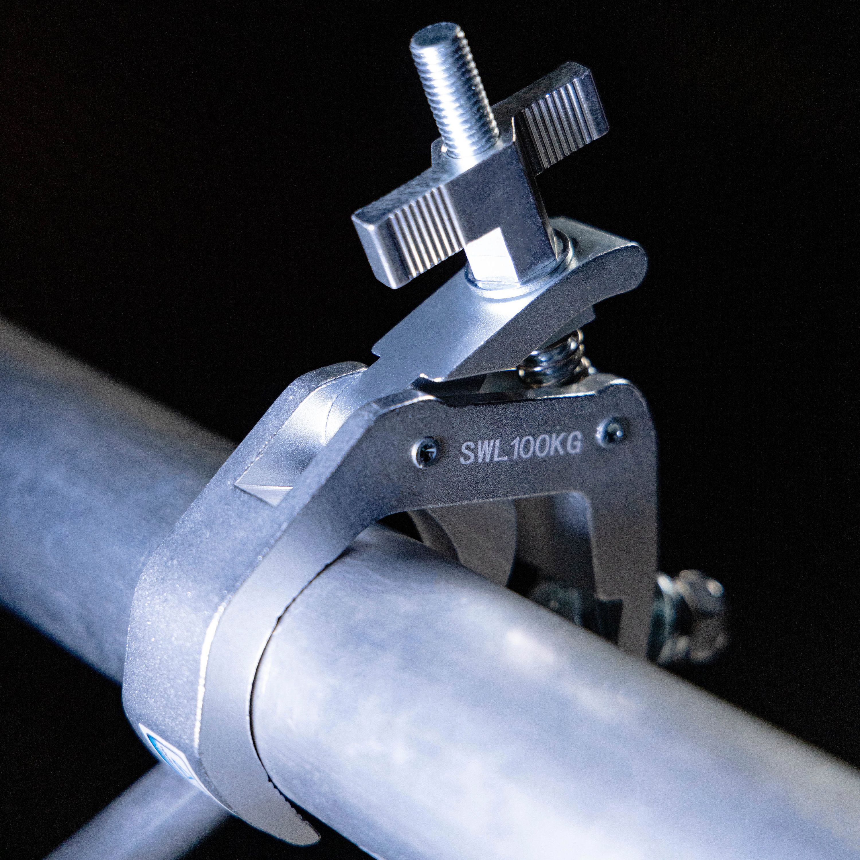 The Plugger 50CL100SIL is a professional clamp hook specially designed to securely hold your lighting equipment. Compatible with bars from 40 to 58 mm, it can support up to 100 kg, providing a solid hold for your spotlights, LED bars and motorised lightin...