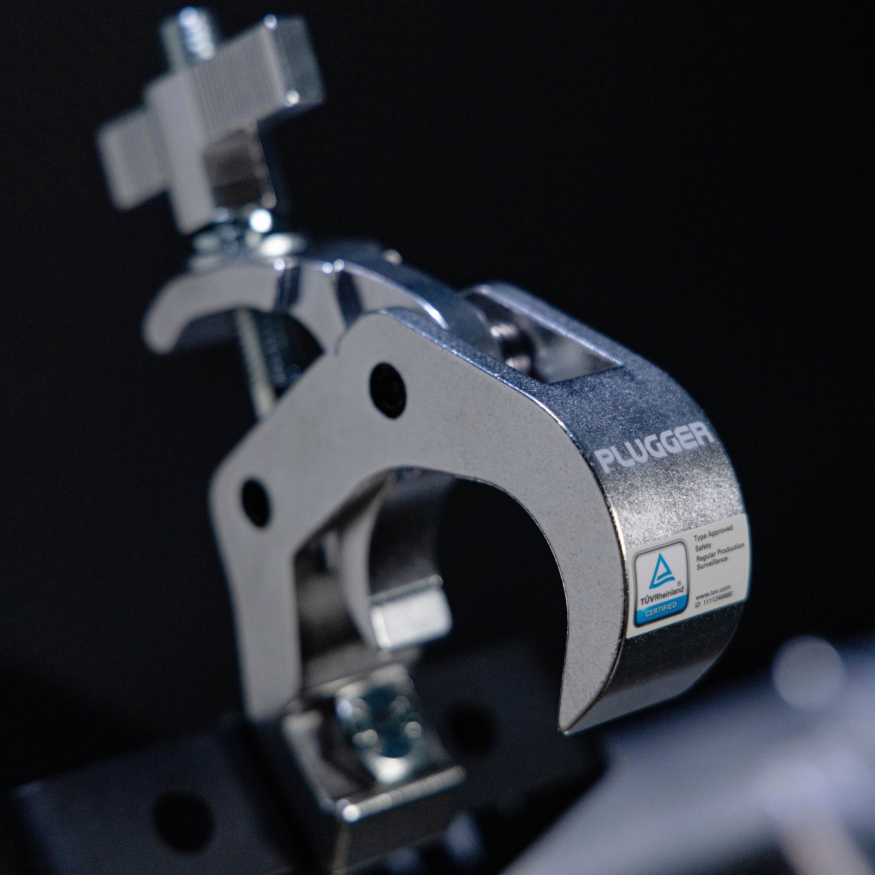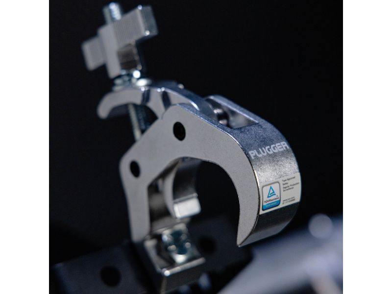 The Plugger 50CL250SIL is a professional clamp designed to secure your lighting installations during concerts, events and DJ performances. Designed to fit 40 to 58 mm bars, it can support a maximum load of 250 kg, so you can hang your spotlights, motorised speakers or LED bars with complete confidence. This clamp is TUV Rheinland certified, guaranteeing compliance with European safety standards - an essential criterion for suppliers and lighting directors. Its silver finish gives it a discreet, aesthetic appearance, perfectly suited to aluminium structures or modern stage installations. Easy to install, it comes complete with butterfly clamp and Nylstop nut, ensuring rapid assembly and reliable locking. Constructed from robust materials, it stands up to the rigours of intensive use, whether on tour, in a club or on stage. The Plugger 50CL250SIL combines practicality, reliability and elegant design, making it an essential tool for technicians and event organisers looking for a secure, professional lighting rig.