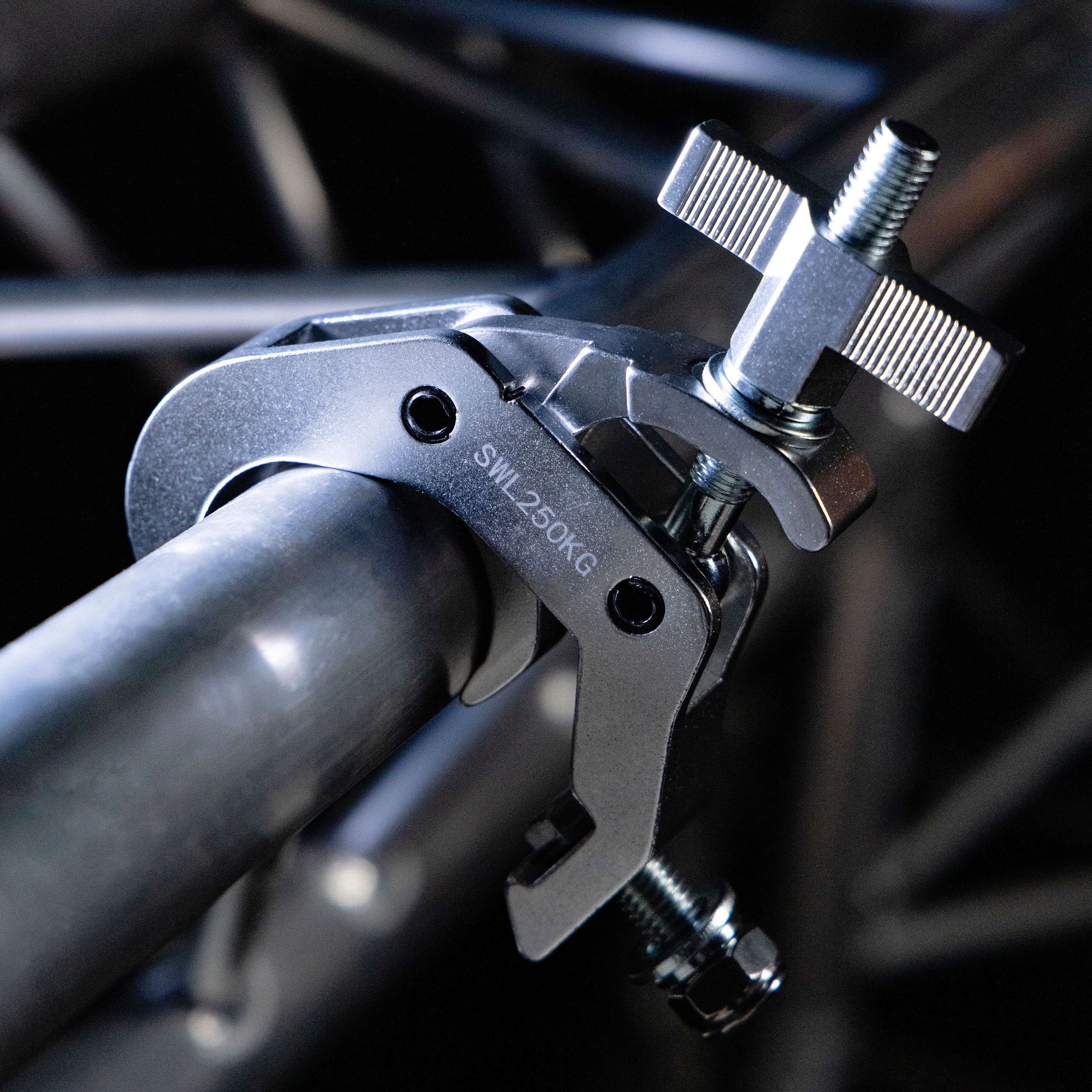The Plugger 50CL250SIL is a professional clamp designed to secure your lighting installations during concerts, events and DJ performances. Designed to fit 40 to 58 mm bars, it can support a maximum load of 250 kg, so you can hang your spotlights, motorise...