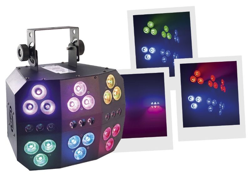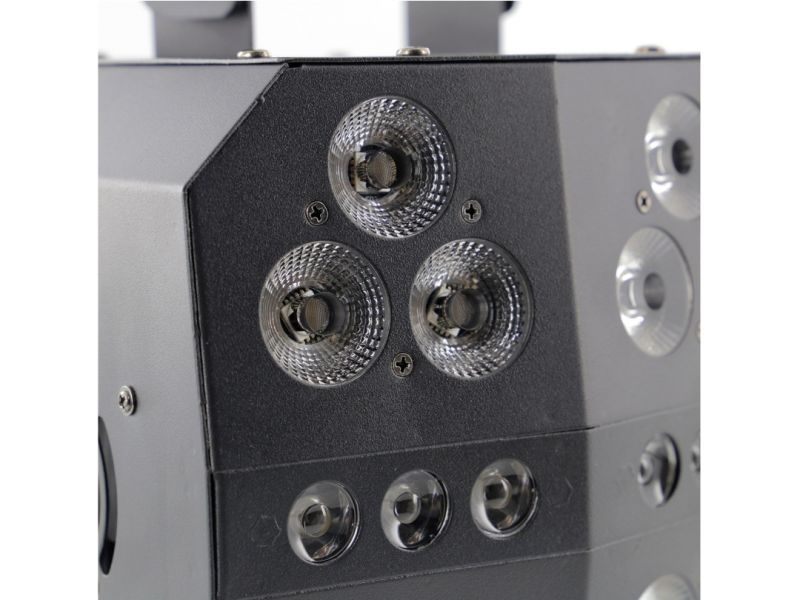 The BoomToneDJ 6 Pack LED PAR is a powerful and versatile set of lights designed for stages, DJ nights, clubs and dynamic events. It offers 6 distinct light zones, combining a multicoloured RGBW/UV Wash effect and an intense white Strobe effect, for rich, rhythmic visual effects. With its 18 x 8 W 5-in-1 RGBW/UV LEDs and 9 x 1 W white LEDs, it produces vivid colours, nuanced mixes and sharp flashes. It can operate in automatic mode, music detection with microphone sensitivity adjustment, or in master/slave mode for synchronised set-ups. DMX-compatible (2, 10 or 35 channels), it gives precise control of every effect and zone, making it ideal for professional lighting and stage installations. The included remote control provides quick access to functions, even without a console. Compact and portable (335 x 265 x 330 mm, 3.6 kg), this projector is perfect for mobile use, fixed installations or live performances. Its low power consumption (165 W max) and universal power supply (AC 100-240V) make it a reliable tool in all conditions. Designed by BoomToneDJ, a renowned French brand, the 6 Pack LED PAR combines efficiency, versatility and ease of use for all stage lighting enthusiasts.