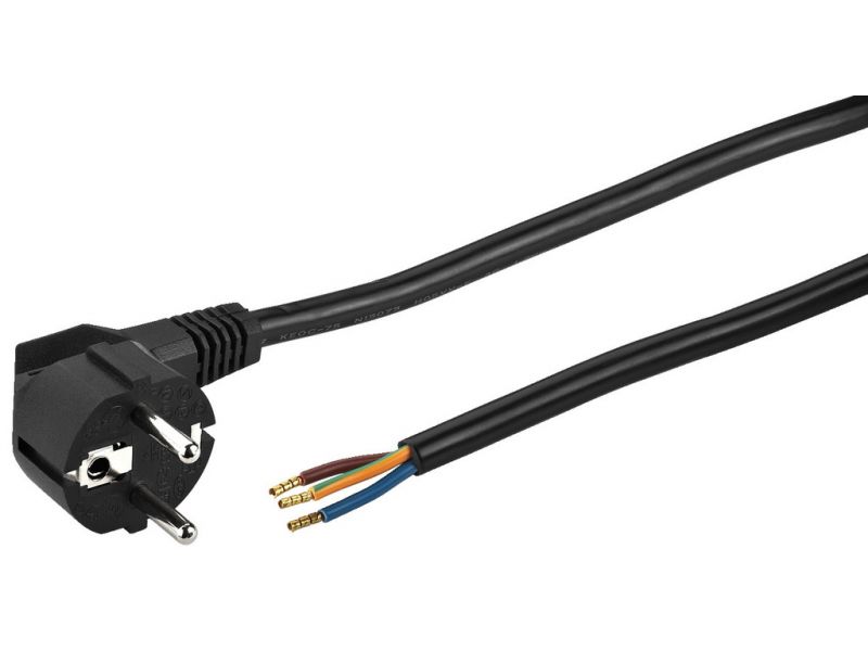 Sieťový kábel Uzemnená zástrčka na koncovky káblov Špecifikácia kábla: H05VV-F3G x 1.5 mm2 Dĺžka: 2 m