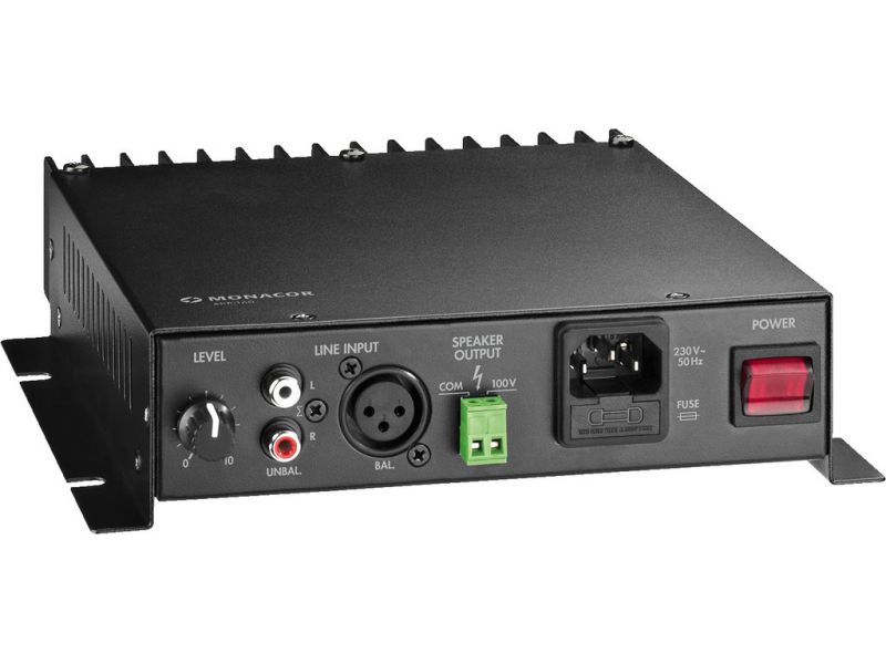 PA zosilňovač, s 100 V výstupom. 1 x 40 W Tichý chod vďaka koncepcii chladenia bez ventilátora Vyvážený vstup (XLR) a nevyvážený vstup (RCA) Výstup reproduktora cez pružinové konektory reproduktorov Ovládanie hlasitosti Kovové puzdro s montážnymi konzo...