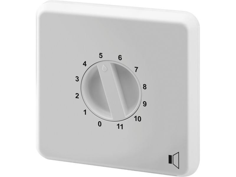 Nástenný ovládač hlasitosti PA Zapustené ovládanie, aby sa zabránilo neúmyselnému prestaveniu Stlmenie v 11 krokoch a OFF Audio transformátor pre 100 V linkovú technikuBiely plastový predný panel (odnímateľný) a gombík Zapustená montáž do štandardných...