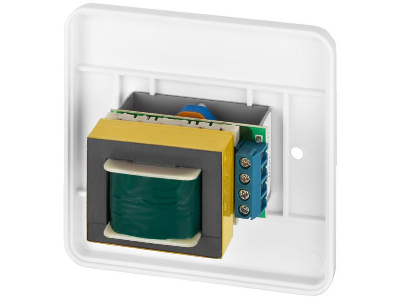 Nástenný ovládač hlasitosti PA Oslabenie v 10 krokoch, poícia 0 je OFF Audio transformátor pre 100 V linkovú techniku Predný panel a gombík z bieleho plastu Zapustená montáž, povrchová montáž s príslušným krytom ATT-200, dostupný v ponuke