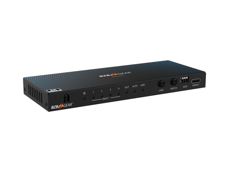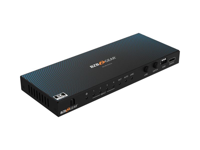 HDMI 2.1 prepínač 4x1, ktorý umožňuje pripojenie až štyroch HDMI zdrojov k jednému zobrazovaciemu zariadeniu a zároveň ponúka možnosť extrakcie zvuku (audio de-embedding).