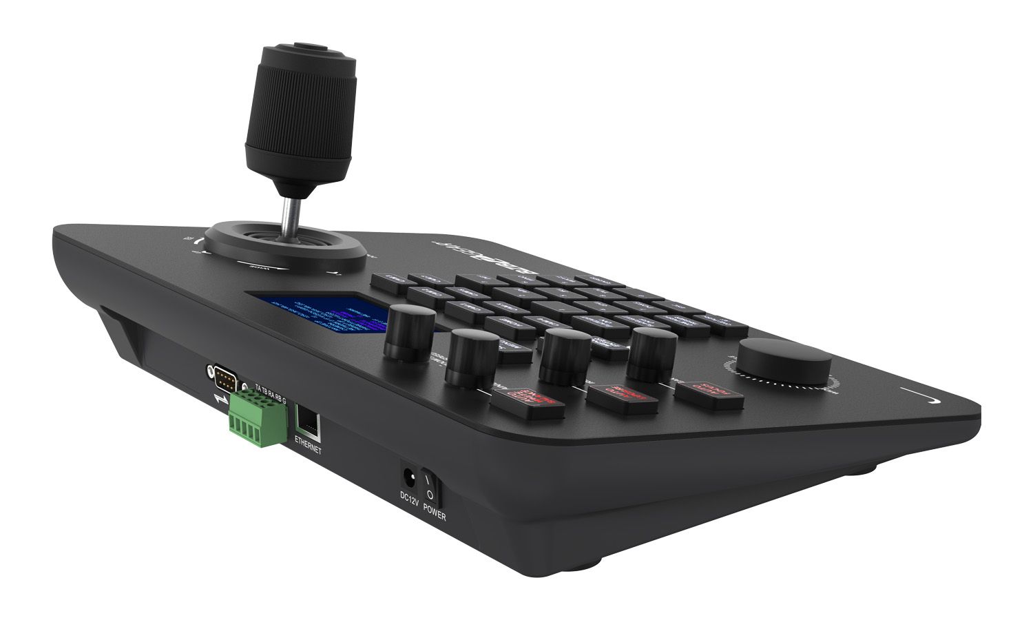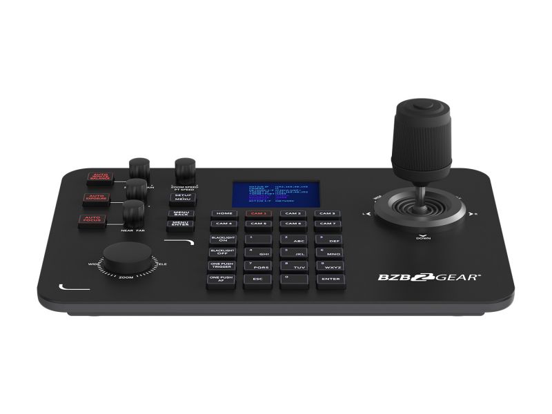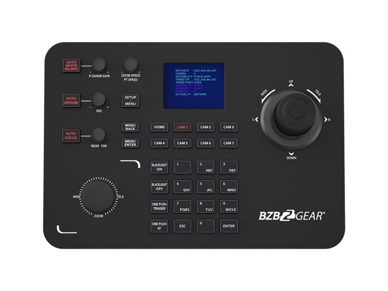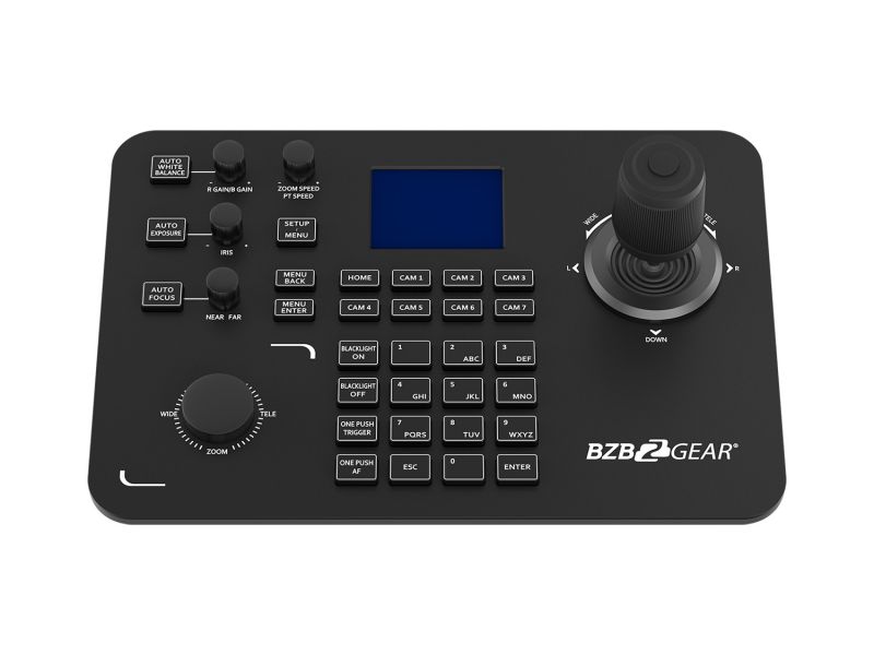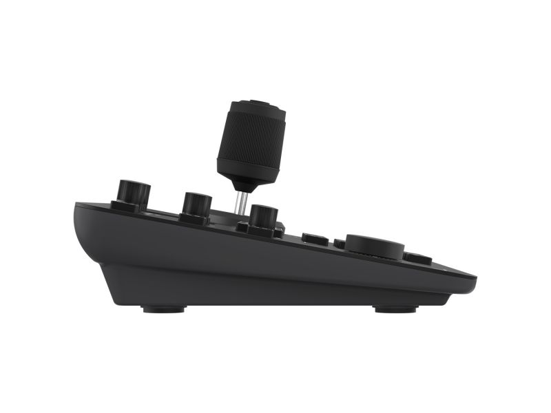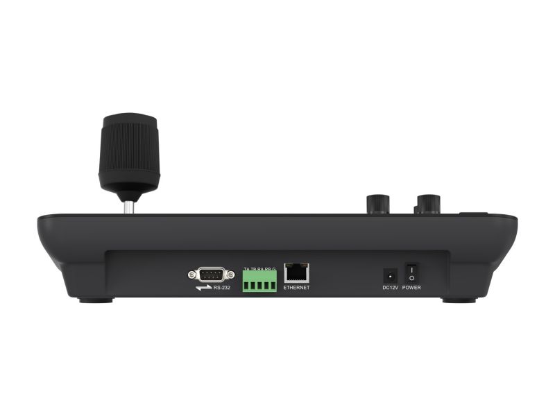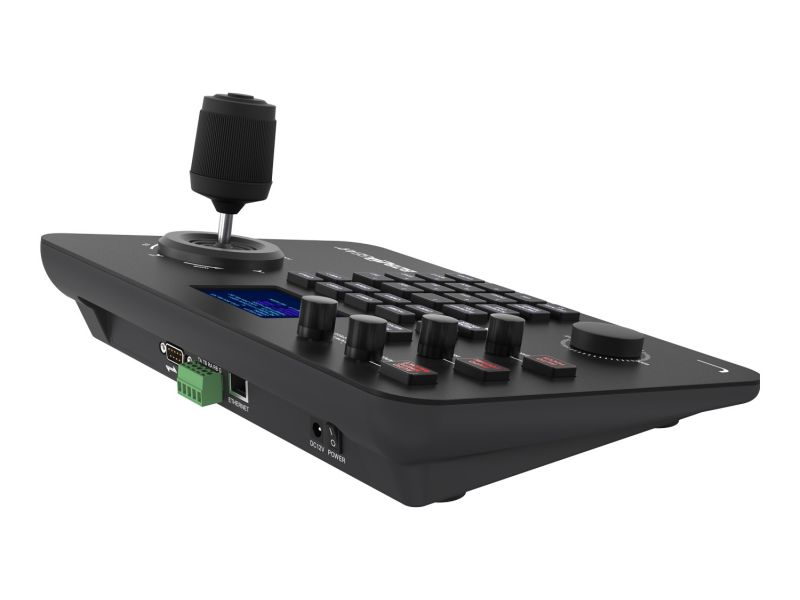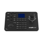Pokročilý joystick ovládač navrhnutý pre efektívne a presné riadenie PTZ kamier v profesionálnych inštaláciách. Podporuje IP protokoly (cez LAN s PoE) aj tradičné sériové pripojenia (RS232, RS422, RS485), vďaka čomu je kompatibilný s väčšinou PTZ kamier na trhu. Ovládač podporuje najrozšírenejšie protokoly vrátane IP VISCA, RS-232 VISCA, Pelco-D a Pelco-P, čím zaisťuje maximálnu flexibilitu v rôznych typoch projektov – od jednoduchých zasadacích miestností až po zložité štúdiové prostredia. Pohodlné ovládanie zabezpečuje ergonomický joystick, otočný ovládač na zoom/focus a intuitívne tlačidlá pre prepínanie medzi kamerami, aktiváciu predvolieb (presets) a menu navigáciu. Veľkou výhodou je farebný LCD displej, ktorý zobrazuje aktuálne nastavenia a stav pripojenia.
