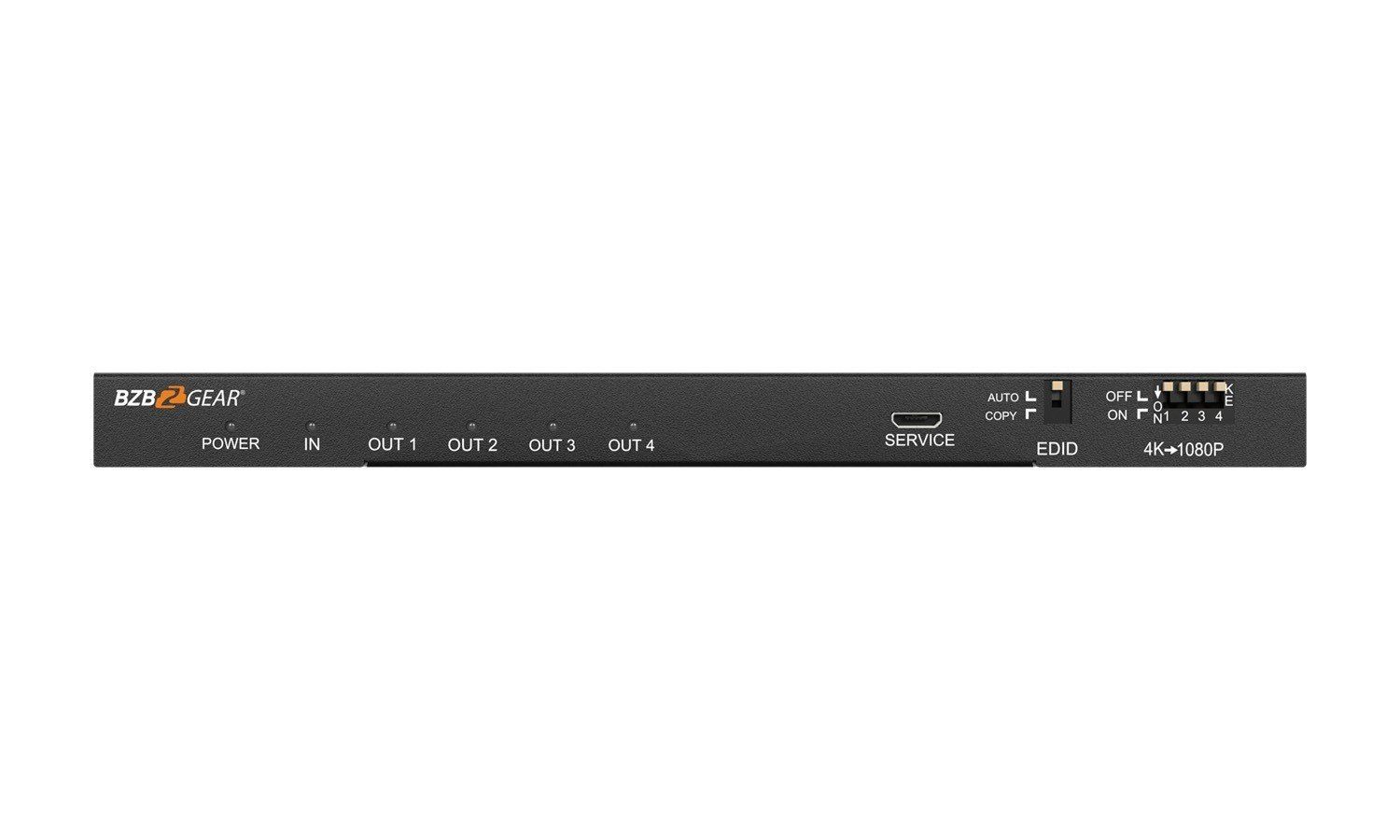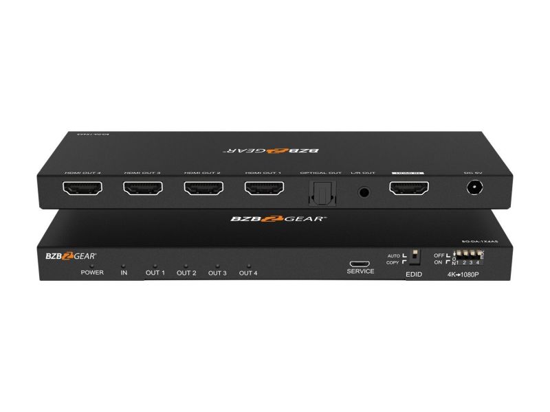 Univerzálny HDMI splitter, ktorý umožňuje rozdeliť jeden HDMI signál do štyroch výstupov – každý s možnosťou nezávislého škálovania. Vstupné rozlíšenie až 4K@60Hz (HDMI 2.0) je možné škálovať na 1080p, čo zaručuje kompatibilitu so staršími zobrazovačmi alebo projektormi.