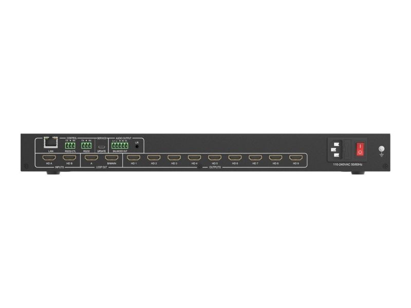 Každý HDMI výstup je možné nezávisle nakonfigurovať – otočiť, prevrátiť, prispôsobiť rozlíšenie alebo nastaviť EDID parametre. Vďaka tomu je zariadenie vhodné nielen pre klasické inštalácie, ale aj pre kreatívne AV riešenia, kde sú obrazovky umiestnené v rôznych orientáciách.