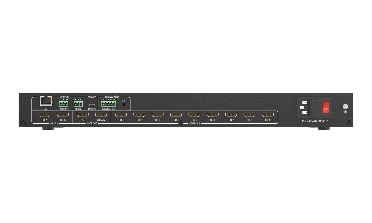 Výkonný 4K HDMI video wall procesor, ktorý umožňuje vytvárať vizuálne pôsobivé videosteny až do rozloženia 3×3 (9 obrazoviek). Je vybavený jedným HDMI vstupom, ktorý zvládne signály až do rozlíšenia 4K@60Hz (4:4:4), a deviatimi výstupmi v 1080p60, čím zabezpečuje jasný a kvalitný obraz na každom displeji.