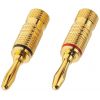 Dvojica banánových zástrčiek pre reproduktory, 4 mm Spletený kontaktKompletná pozlátená verzia Červený alebo čierny kódovací krúžokNa pripojenie káblov do: Ø 4 mm Tiež vhodný pre vysokovýkonné technológie