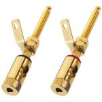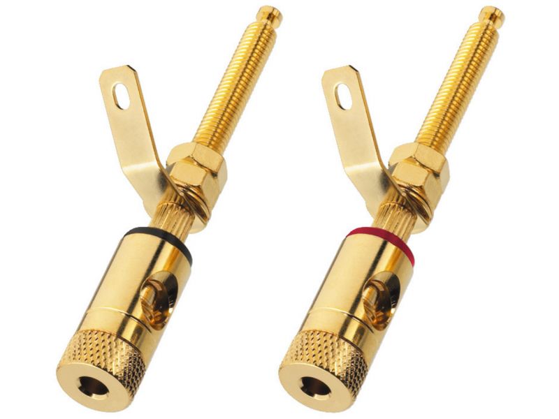 Dvojica reproduktorových pólových svoriek Robustná pozlátená verzia Naskrutkovanie a zapojenie Pre drevené skrinky do 33 mm