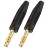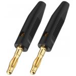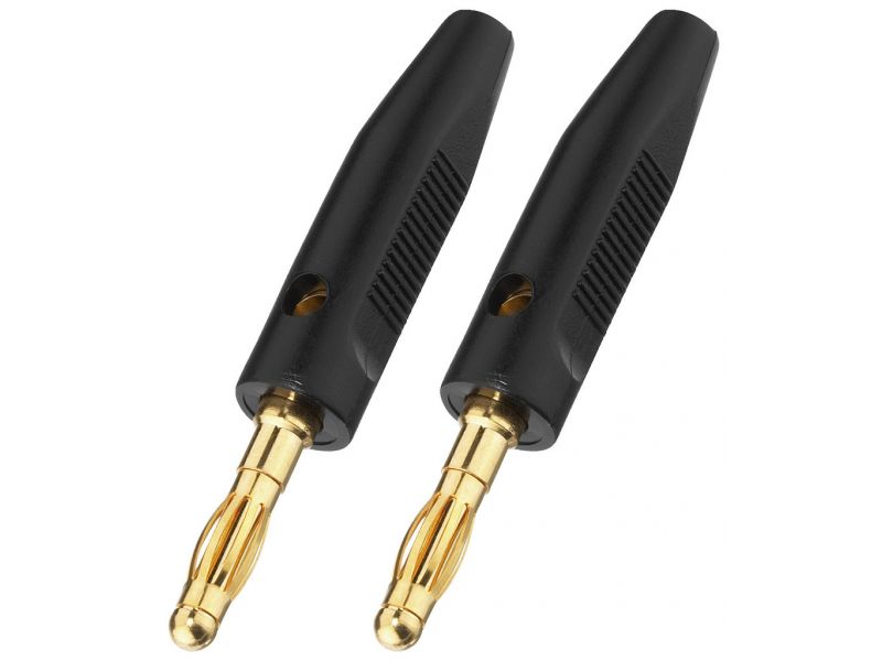 Banánové zástrčky pre reproduktory, 4 mm s priečnym otvoromSpojený, pozlátený kontaktSkrutkové pripojeniePVC puzdro