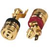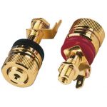 Pár high-end pólových svoriek reproduktorov Extra pevná pozlátená verzia Naskrutkovanie a zapojenie Pre drevené skrinky do 25mmPre izolované použitie v kovových skrinkách