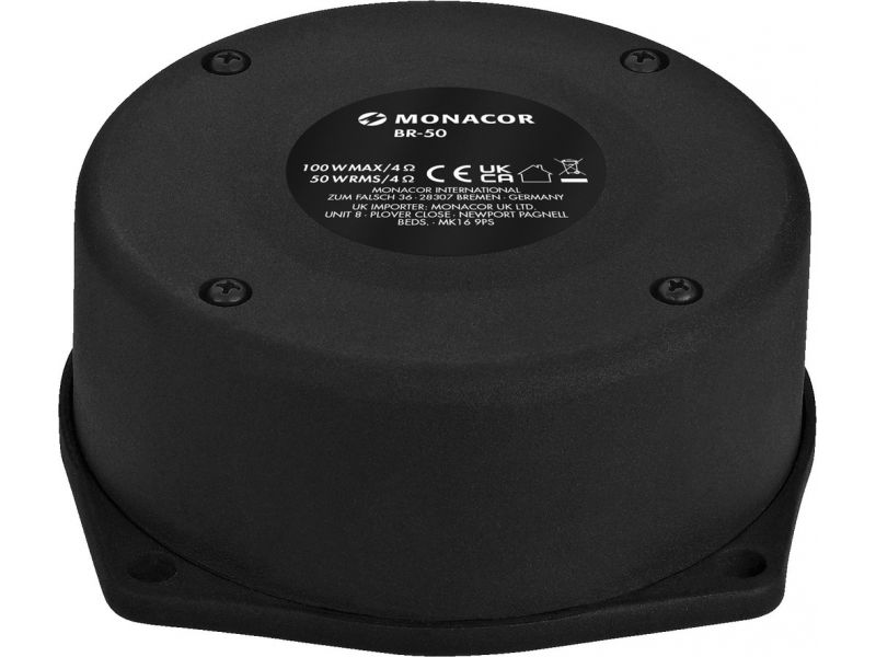 Bass rocker, 50 W, 4 Ω Špeciálna technológia na vytváranie zvuku prenášaného štruktúrou Montáž na sedadlo alebo tiež na podlahu alebo tanečný parket schopný vibrovať Vytvára silný bas, ktorý sa dá fyzicky cítiť Ľahká montáž pomocou skrutiek Pripojenie...