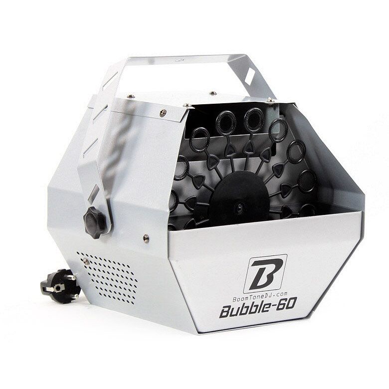 Bubble MachineProduces many bubblesIdeal for weddings or Dance floorOn / off switchTank capacity 0.75 LContinuous bubbles flowMetal bodyMounting bracketAlso works on the floor or on a table1A FuseUse bubble fluid onlyComplies with CE and RoHSProtection IP...