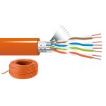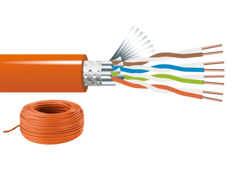 Cat. 7A inštalačný kábel, viacnásobné tienenie, S/FTP 100 m, zmršťovacia cievka 10 GB/sek., 1,000 MHz Dvojice vodičov v kovovej fólii (PiMF) a podľa EIA/TIA 568 Celkovo opletený štít Kábel: 4x2xAWG 23 Vonkajší priemer: Ø 7.50 mm