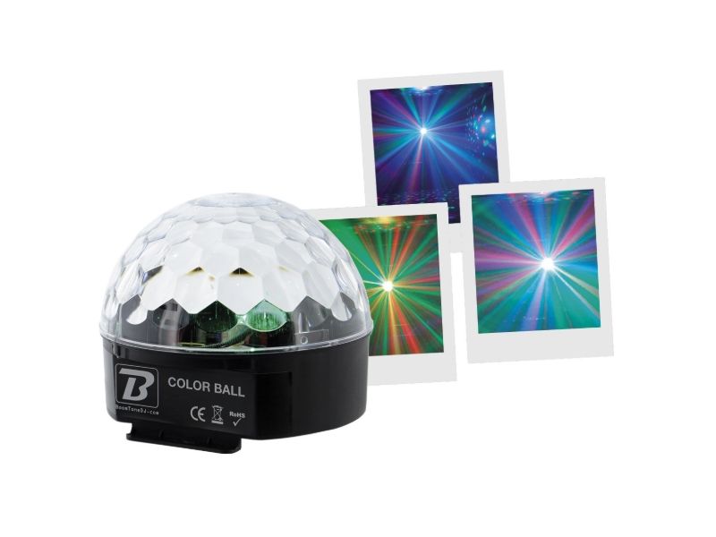 BoomToneDJ Color Ball LED half ball with multibeam effect and color rings. Equipped with 82 lenses with a transparent dome for more effects. Integrated Programs, reacts to music. Plug & Play light game. Easy to use. Coupled with a smok...