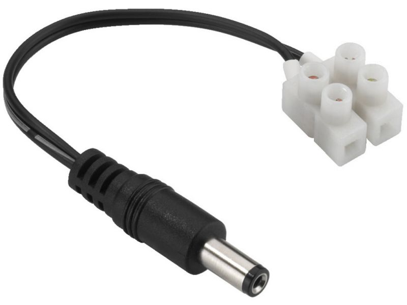 Pripojovací kábel napájacieho zdroja, na rýchlu inštaláciu napr. monitorovacích kamier. Vybavemé nízkonapäťovým konektorom 5.5/2.1 mm a terminálom a označením polarity.