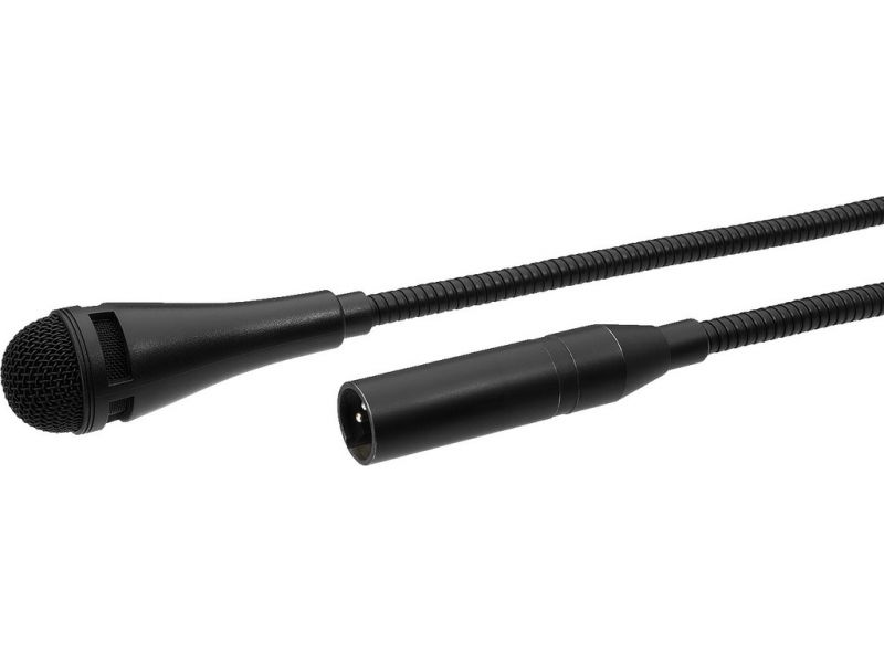 Dynamický mikrofón husí krk Symetrické zapojenie Kardioidná charakteristika 3-pólové XLR pripojenie Celková dĺžka: 700 mm Dodávané s mikrofónnou ochranou proti vetru WS-40