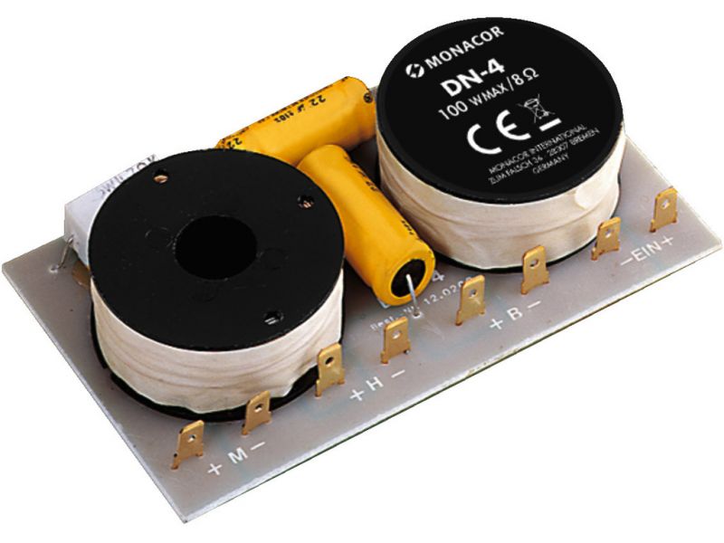 3-pásmová frekvenčná výhybka pre 8 Ω Cievky so vzduchovým jadromVysokokvalitné bipolárne elektrolytické kondenzátory