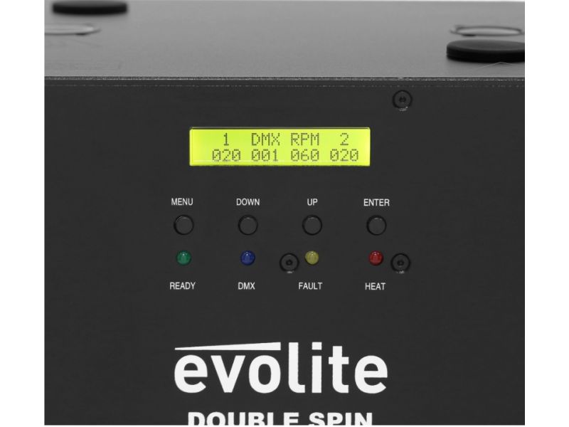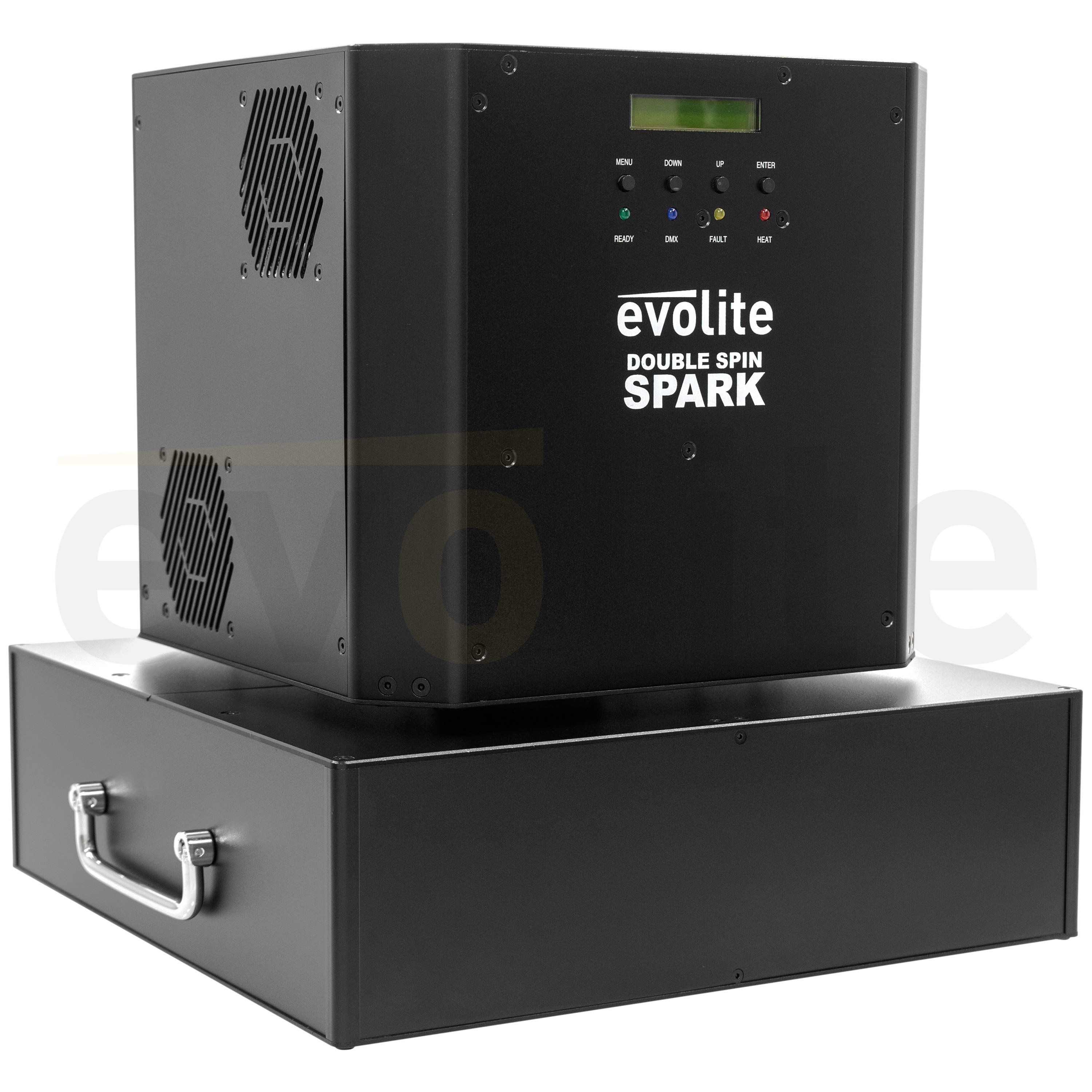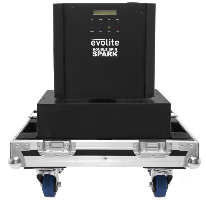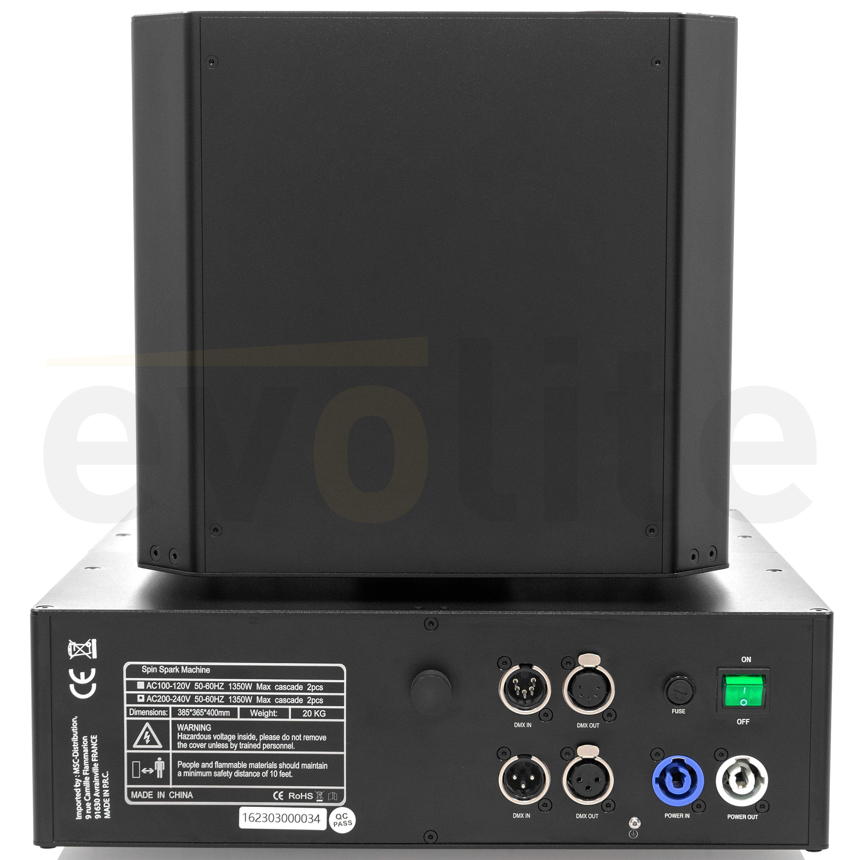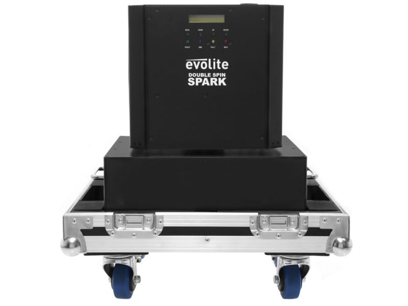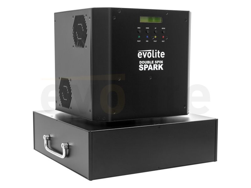 The evolite Double Spin Spark is a rotating cold spark machine with a double jet. The jet height is adjustable.evolite Double Spin SparkDouble rotating professional spark machineUse with evolite Evo Spark Powder only2 or 4 DMX channelsContinuous 360° rota...