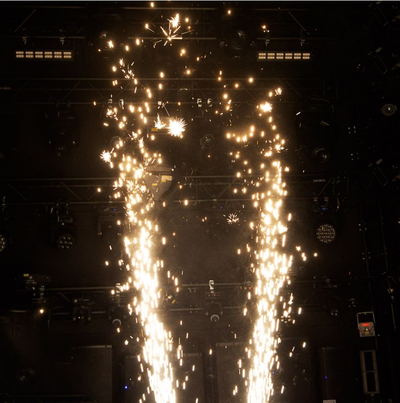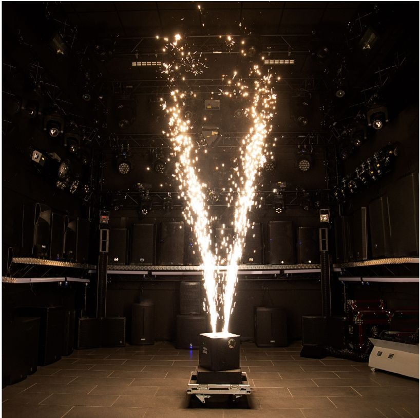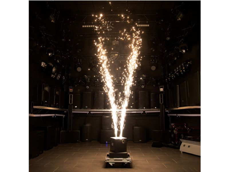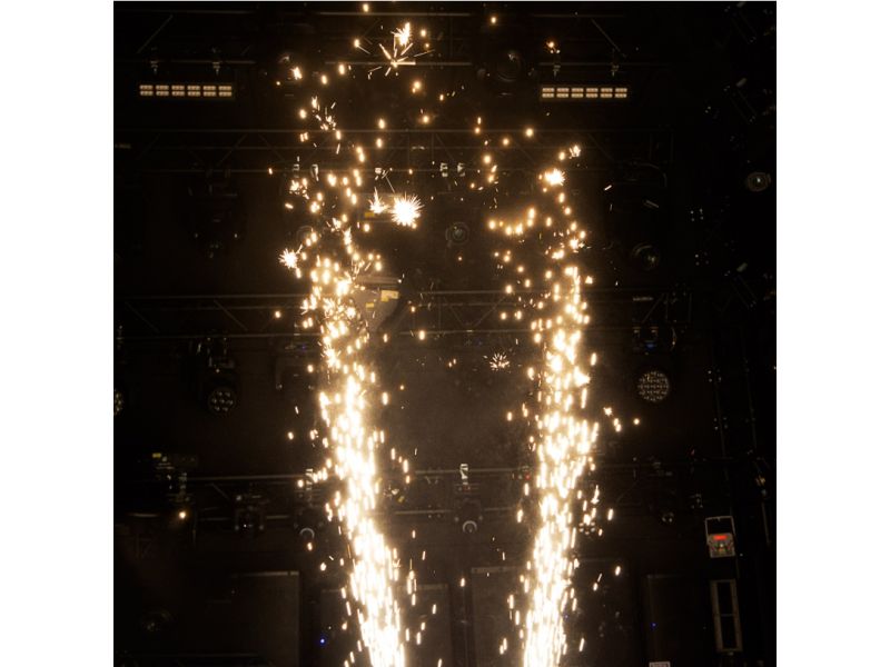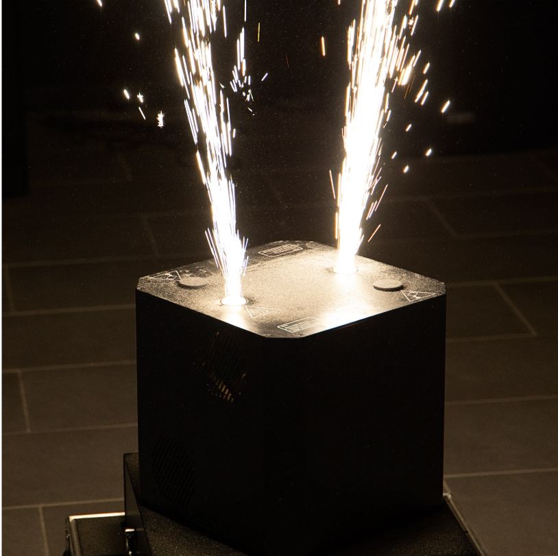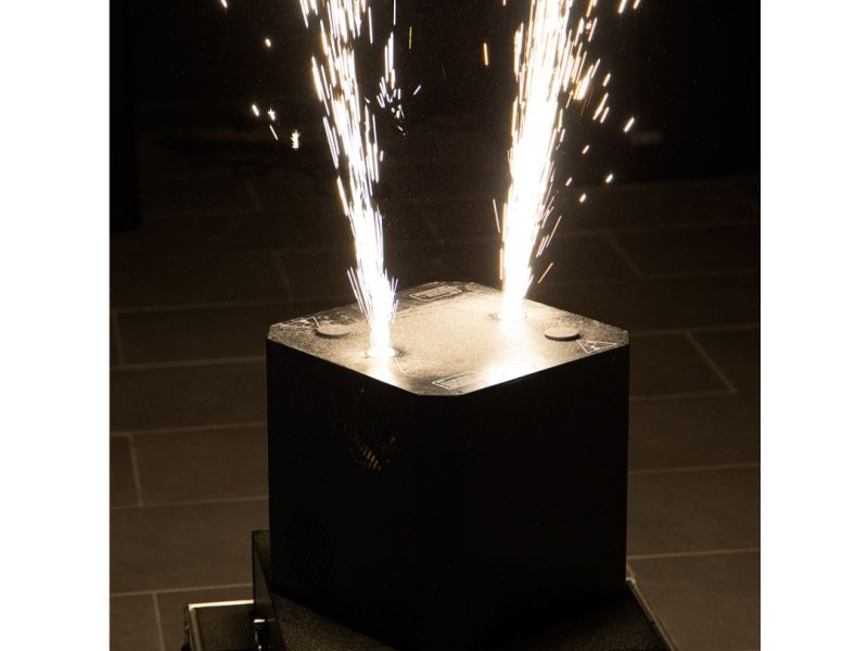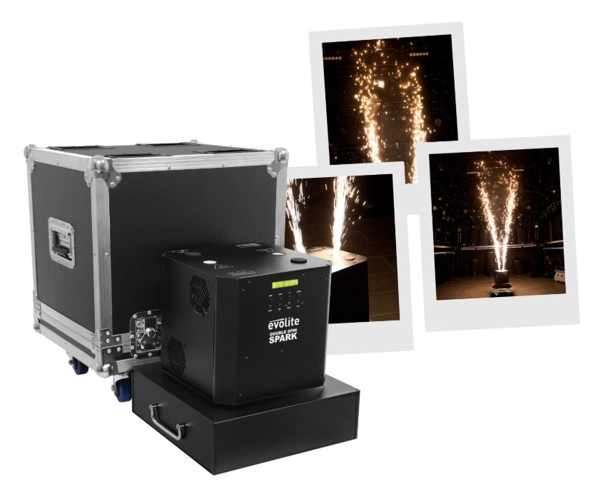 The evolite Double Spin Spark is a rotating cold spark machine with a double jet. The jet height is adjustable.