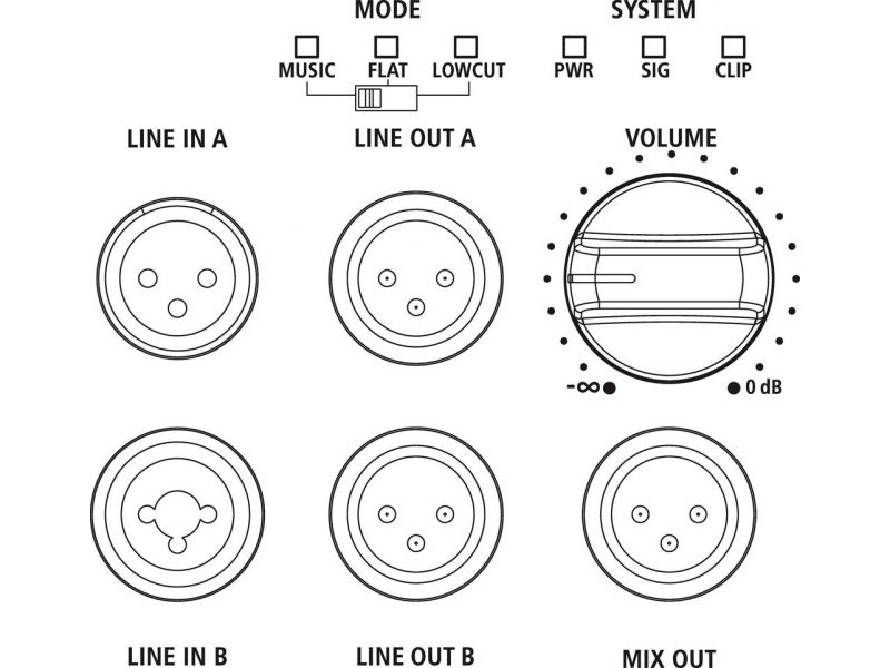 | Vstupy | 1 x comb. XLR/6.3 mm: line 1 x XLR: line |