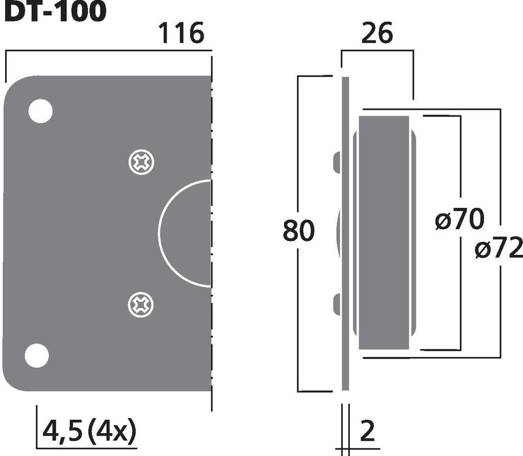Hi-fi dome tweeter, 30 W, 8 Ω Mäkká kupola s vysokou energetickou schopnosťou, klasická obdĺžniková veľkosť Ferrofluid Dobrá linearita s extra vynikajúcimi vlastnosťami Reprodukcia bohatá na detaily