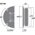 Hi-fi dome tweeter, 40 W, 8 Ω Čistý hodvábny kužeľ Excelentná radiácia Veľmi typická krivka akustického tlaku Na účely výmeny a hi-fi aplikácií