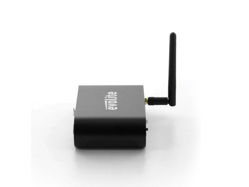 The evolite DWT-512 is a Wireless Solution compatible wireless DMX transceiver. Its small size and light weight make it an ideal choice for mobile DJs and live events.2.4 GHz wireless DMX transceiverFHSS with 79 channelsInterference#free operation32#bit A...