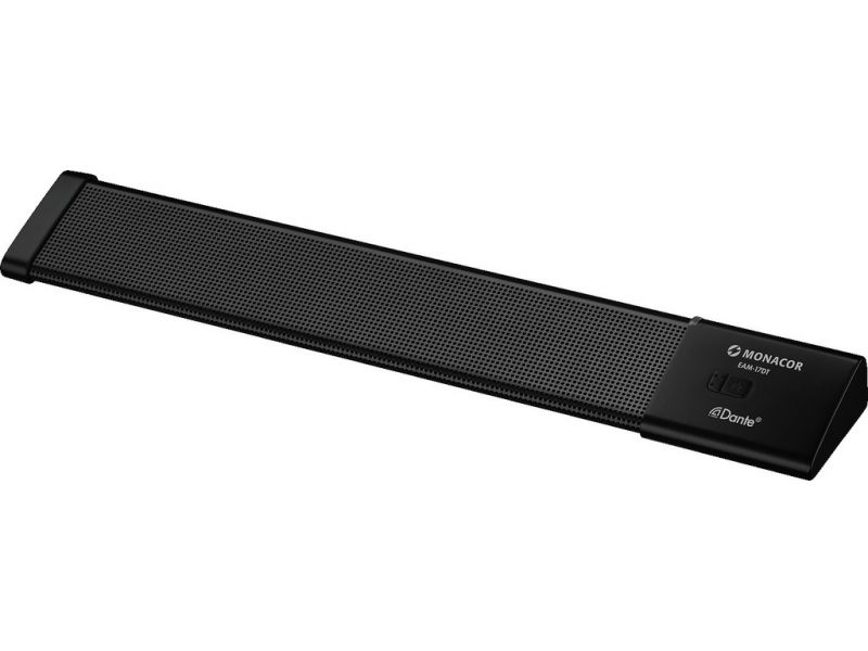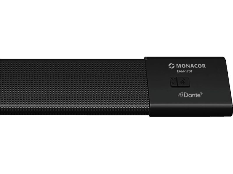 PA desktop microphone (push-to-talk) with integrated Dante® module Back electret (array with 17 cartridges) Supercardioid polar pattern Silent electronic push-button Selectable operating modes: PTM, PTT, ON, OFF RJ45 jack for connection to a Dante® n...
