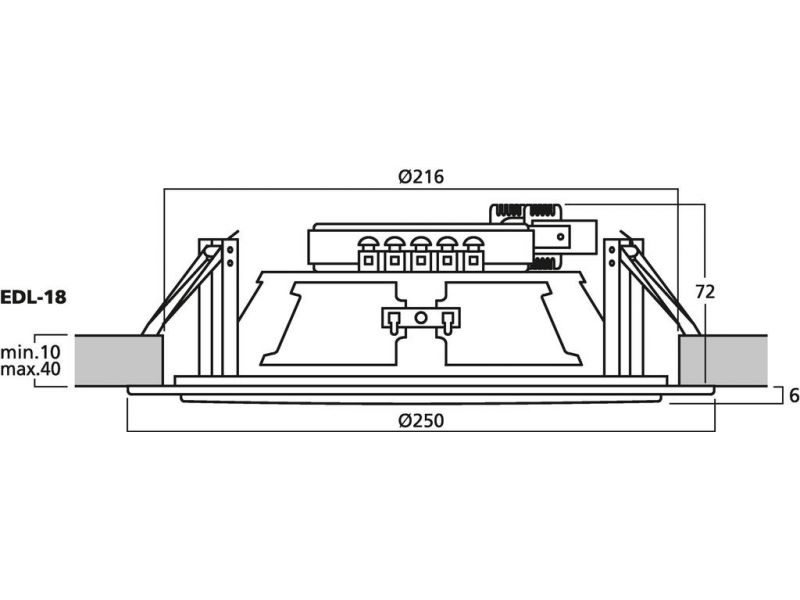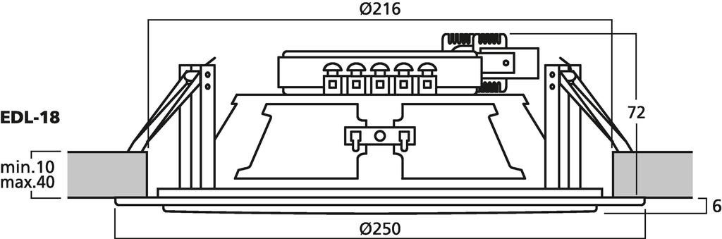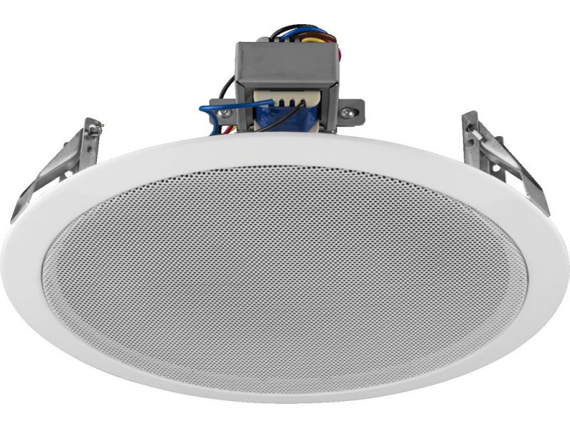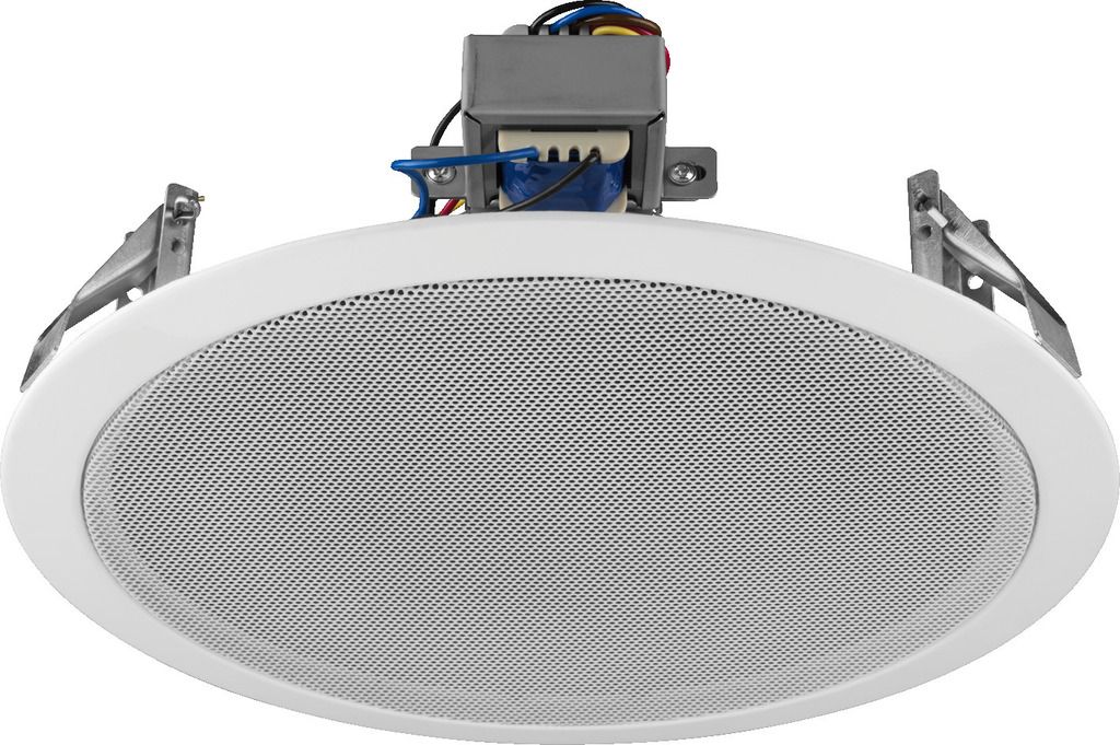 PA stropný reproduktor 100 V linková technika 20 cm (8") reproduktor s plným rozsahom Kovové puzdro s ochrannou mriežkou Výkonové odbočky: 10/6/3/1.5 W Rýchla montáž s pružinovými sponami Pripojenie pomocou pružinového terminálu Pre hrúbku stropu od 10...