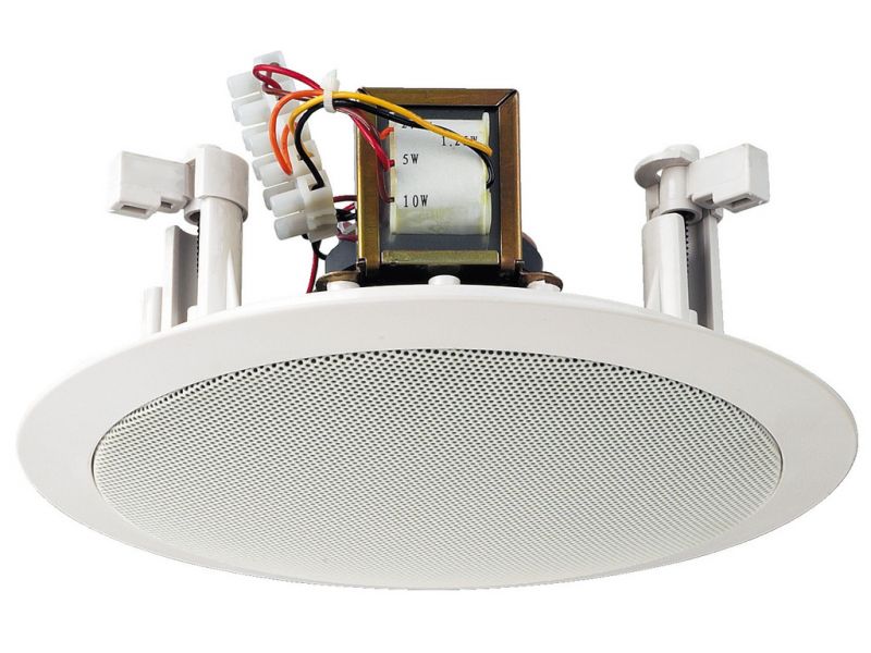 PA stropný reproduktor 100 V linková technológia cez audio transformátor s možnosťou výberu výkonu širokopásmový reproduktor s dvojitou membránou Plastové púzdro s ochrannou kovovou mriežkou Plastový materiál je ABS a samohasiaci podľa normy UL 94V-0 P...