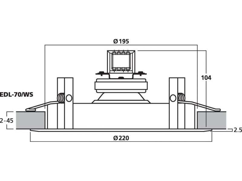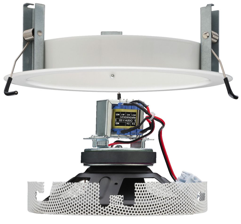 PA stropný reproduktor, so špeciálnou montážou v dvoch krokoch. 100 V linková technológia Snap-in montáž Pre hrúbku stropu od 2 do 45 mm Reproduktor s plným rozsahom s čistou reprodukciou hlasuŠiroký frekvenčný rozsah Robustná kovová verzia (kôš a ochra...