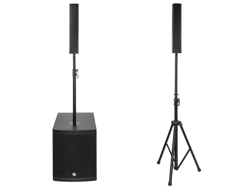 elokance e-Slim 212 1,600 W amplified sound system.elokance e#Slim 212Supplied with coupling tube and tripodAdditional Speakon supplied to separate satellitesSPL max. 130 dB