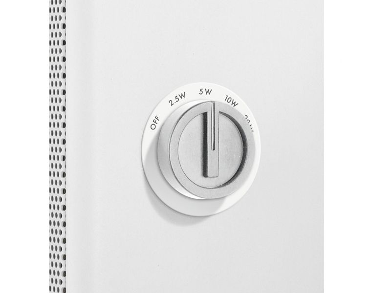 PA nástenný reproduktor 100 V linková technológia 5-stupňový otočný prepínač pre 20/10/5/2.5 W/off Otočný spínač je možné nahradiť krytkou, aby nedošlo k náhodnej zmene voľby výkonu Núdzové prioritné relé Biela drevená skrinka s ochrannou...