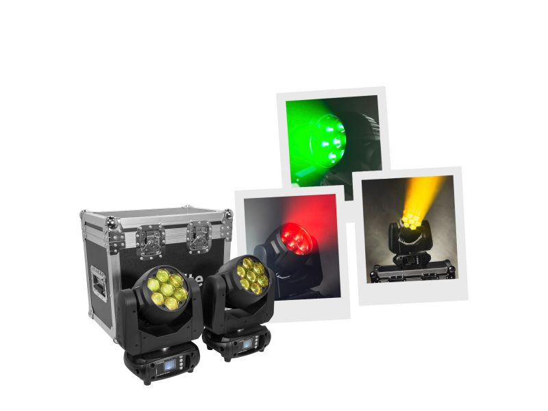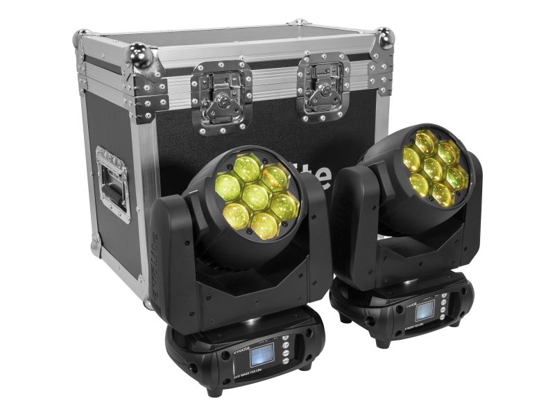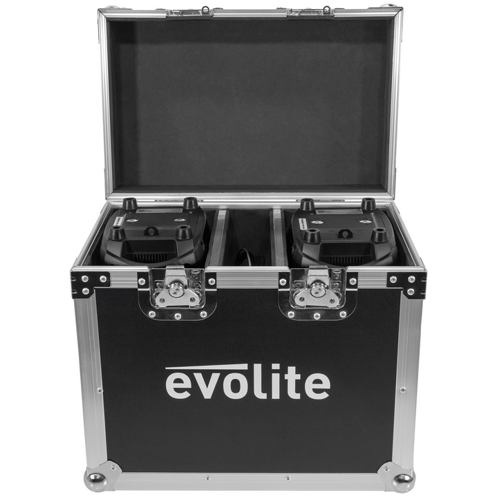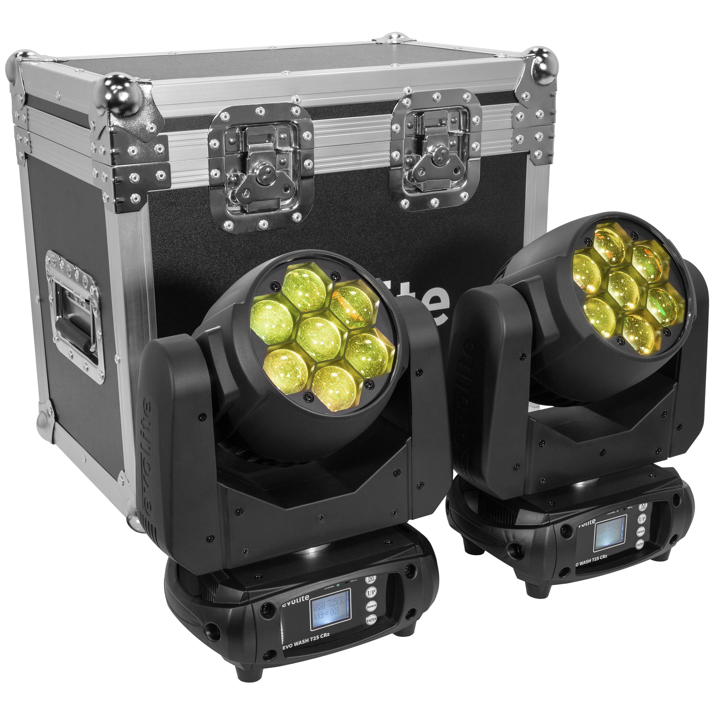 Evo Wash 725-CRz Set from Evolite, pack of two RGBW LED Wash lights in a flight case.