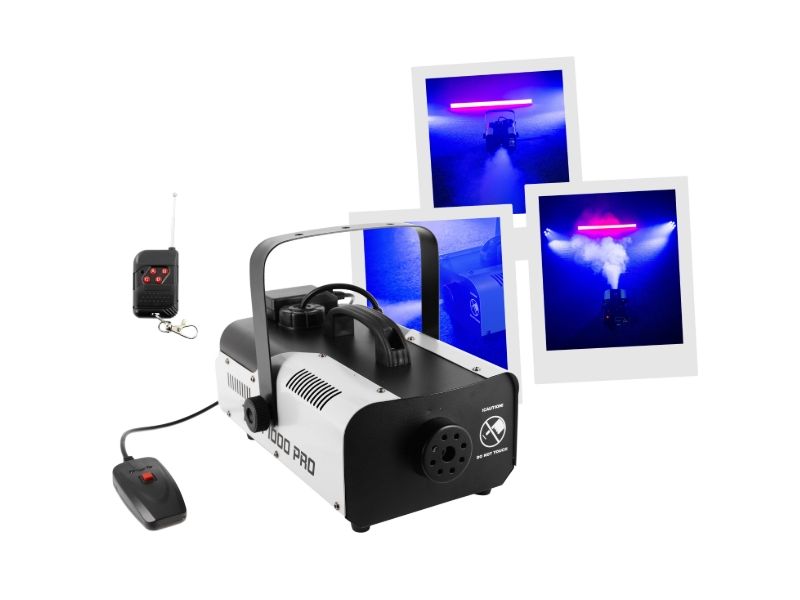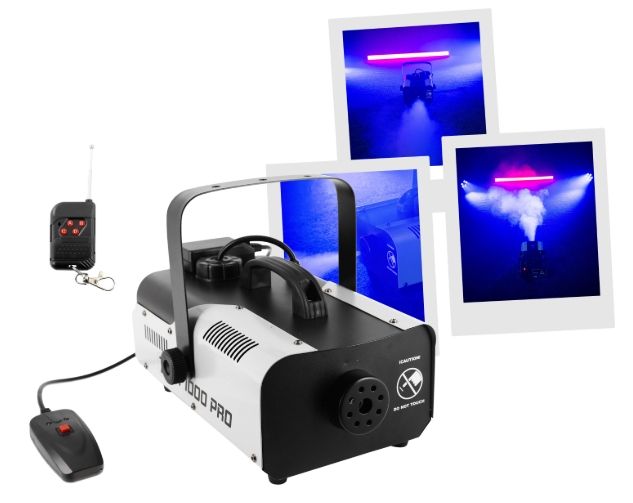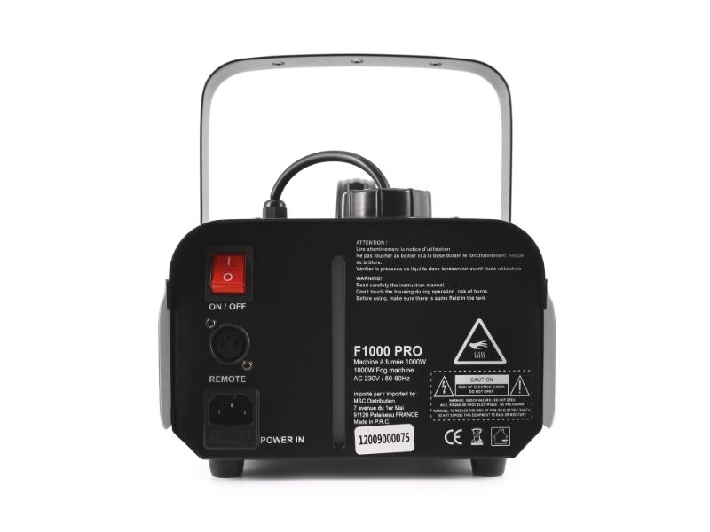 1000W smoke machine BoomToneDJ F1000 Pro, An Impressive Flow of 150m3 for such a compact size. Ideal for discomobiles and private services. Very efficient, it will guarantee you a successful evening! Wired and HF remote control included.