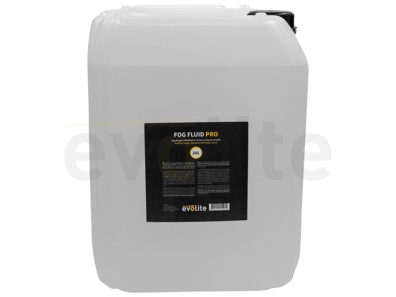 20L canister of liquid for smoke machine, in compliance with CE and NF standards, Evolite Fog Fluid Pro 20LEvolite Fog Fluid Pro 20LLiquid container for smoke machineFormat 20 litresHigh chemical purityProduces a very white smokeIdeal for all smoke machin...