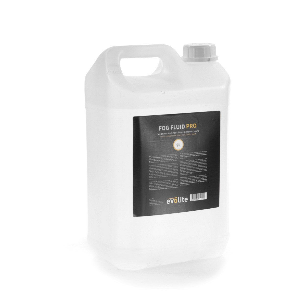 5L canister of liquid for smoke machine, in compliance with CE and NF standards, Evolite Fog Fluid Pro 5LEvolite Fog Fluid Pro 5LLiquid container for smoke machineFormat 5 litresHigh chemical purityProduces a very white smokeIdeal for all smoke machines w...