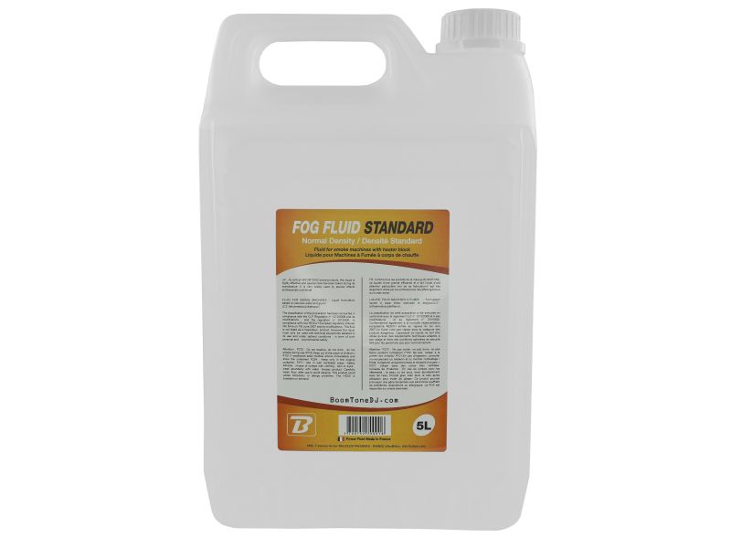 5L container of standard fluid for smoke machine, complies with CE and NF standards, BoomToneDJ Fog Fluid Standard 5L BoomToneDJ Fog Fluid Standard 5L Standard fluid container for smoke machine 5L format High chemical purity Produces a light...