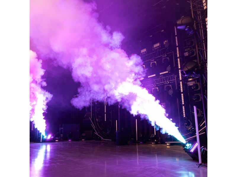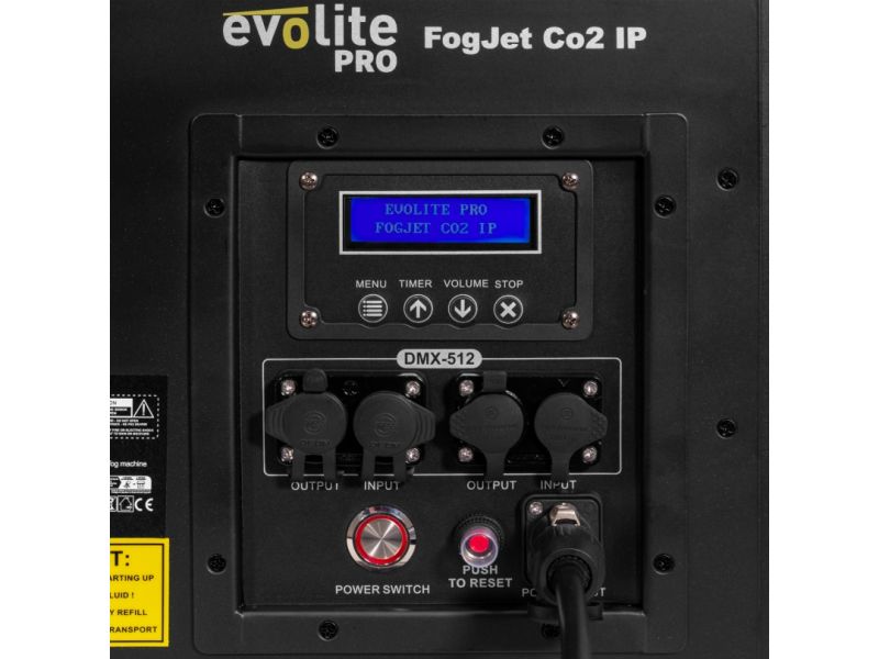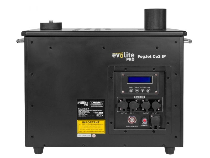 Evolite Pro FogJet Co2 IP - CO2 fog machine, 3500 W, jets up to 15 m, RGB LEDs, IP54, DMX 5/11 channels. Perfect for outdoor concerts and festivals.evolite Pro FogJet Co2 IPCo2 effect fog machine15m smoke projectionIP54 protectionVertical or 45° useUse ev...