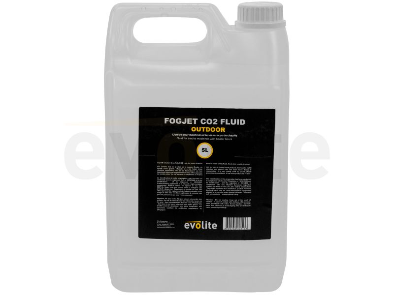 Evolite FogJet Co2 Fluid Outdoor 5L - Professional fluid for Co2 machines. Fast-evaporating opaque white smoke, made in France and NF/CE certified, ideal for outdoor events.evolite FogJet Co2 Fluid outdoor 5LCan of liquid for Co2 fog machine5 litre format...
